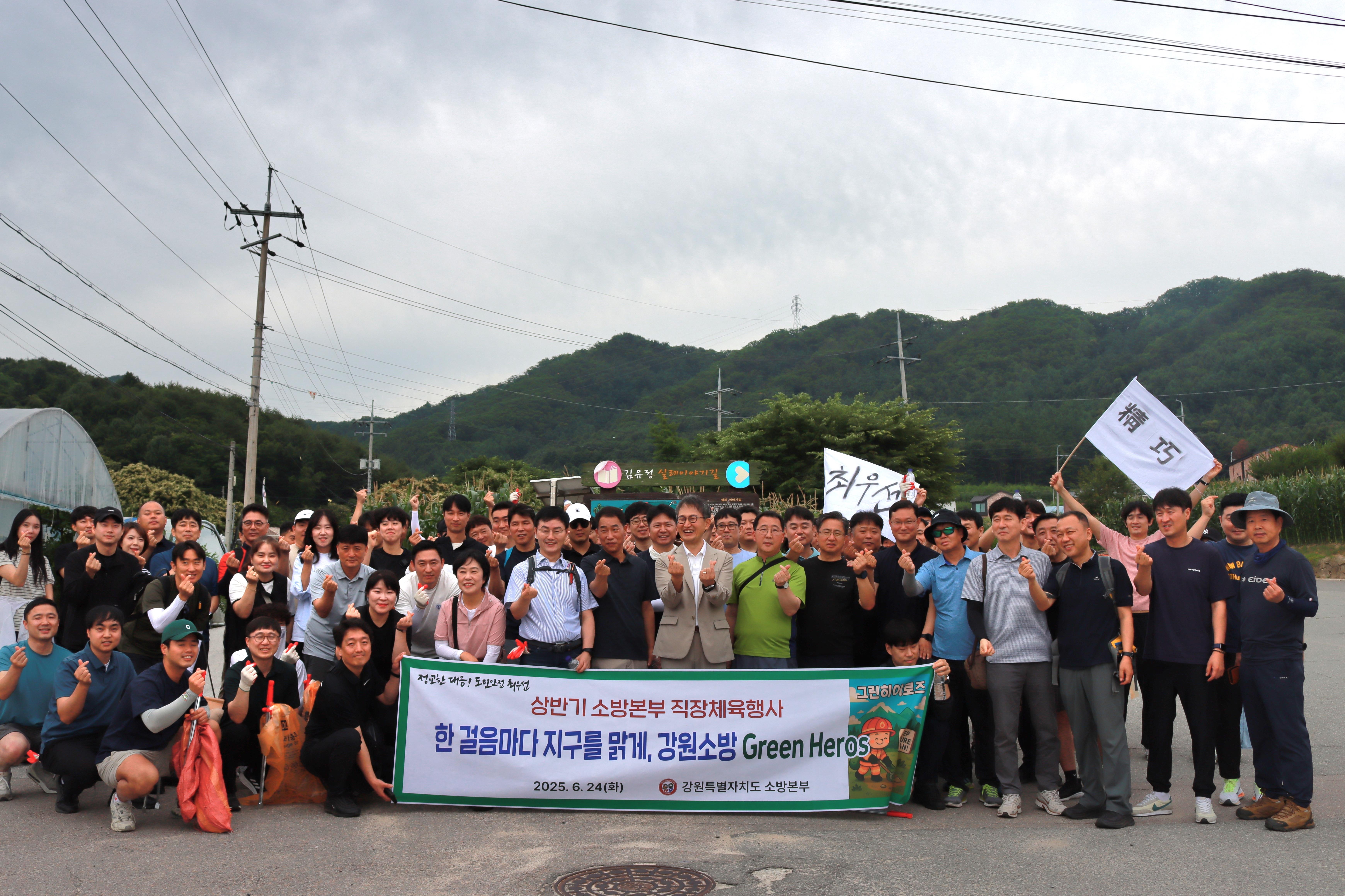 강원소방본부, 금병산서‘줍킹’실천.