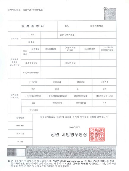 병적증명서는 본인의 병적사항을 증명하는 서류입니다