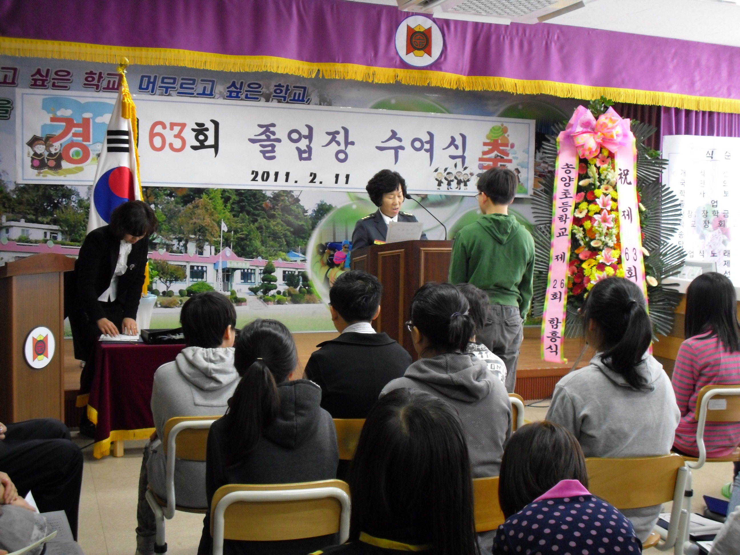 2011년 2월 11일 성산초교 최현아, 송양초교 김상윤 졸업생에게