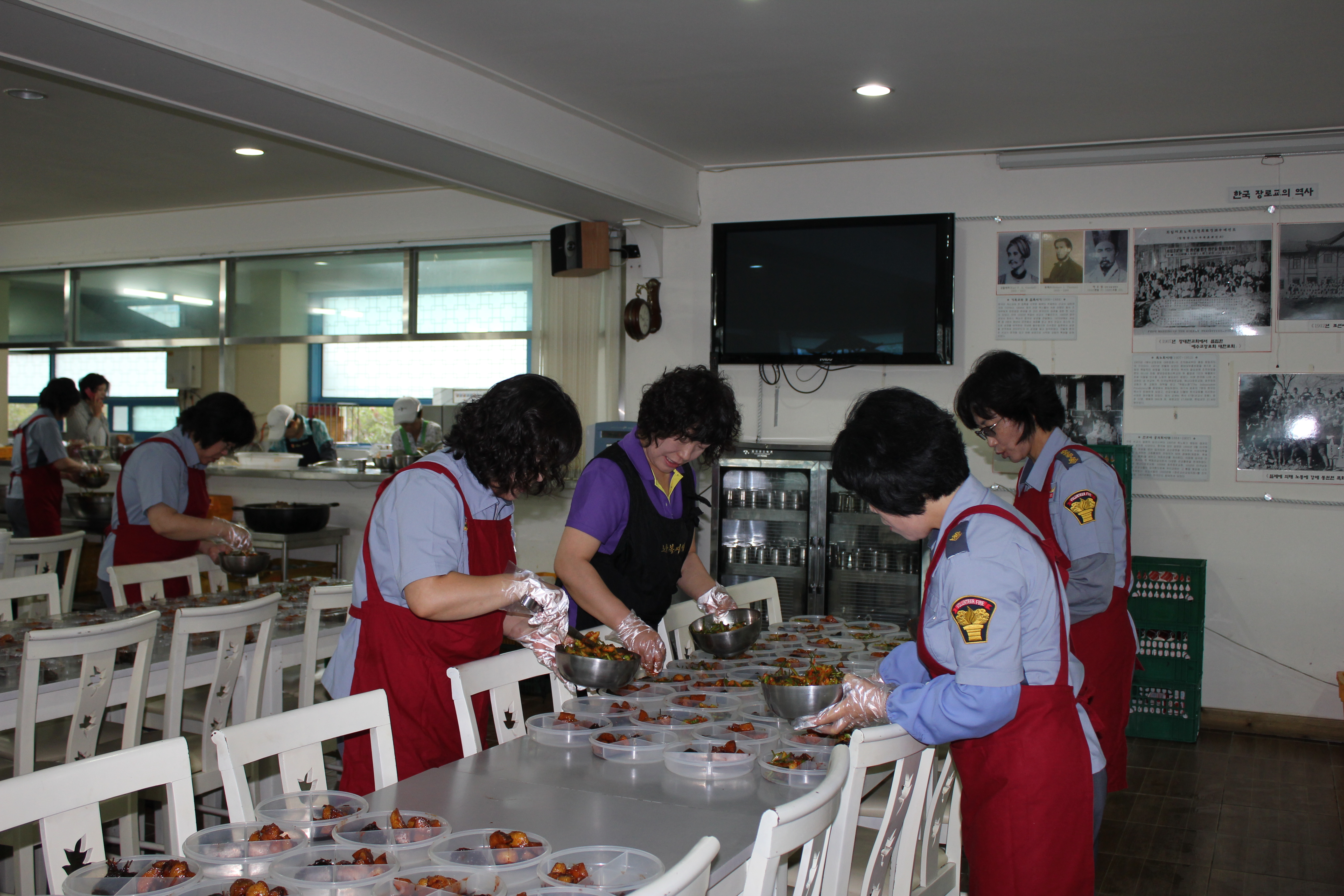 열심히 봉사하는 대원님들 식사는 해야 하는데 식사도 못하고 봉사하시는 모습입니다.