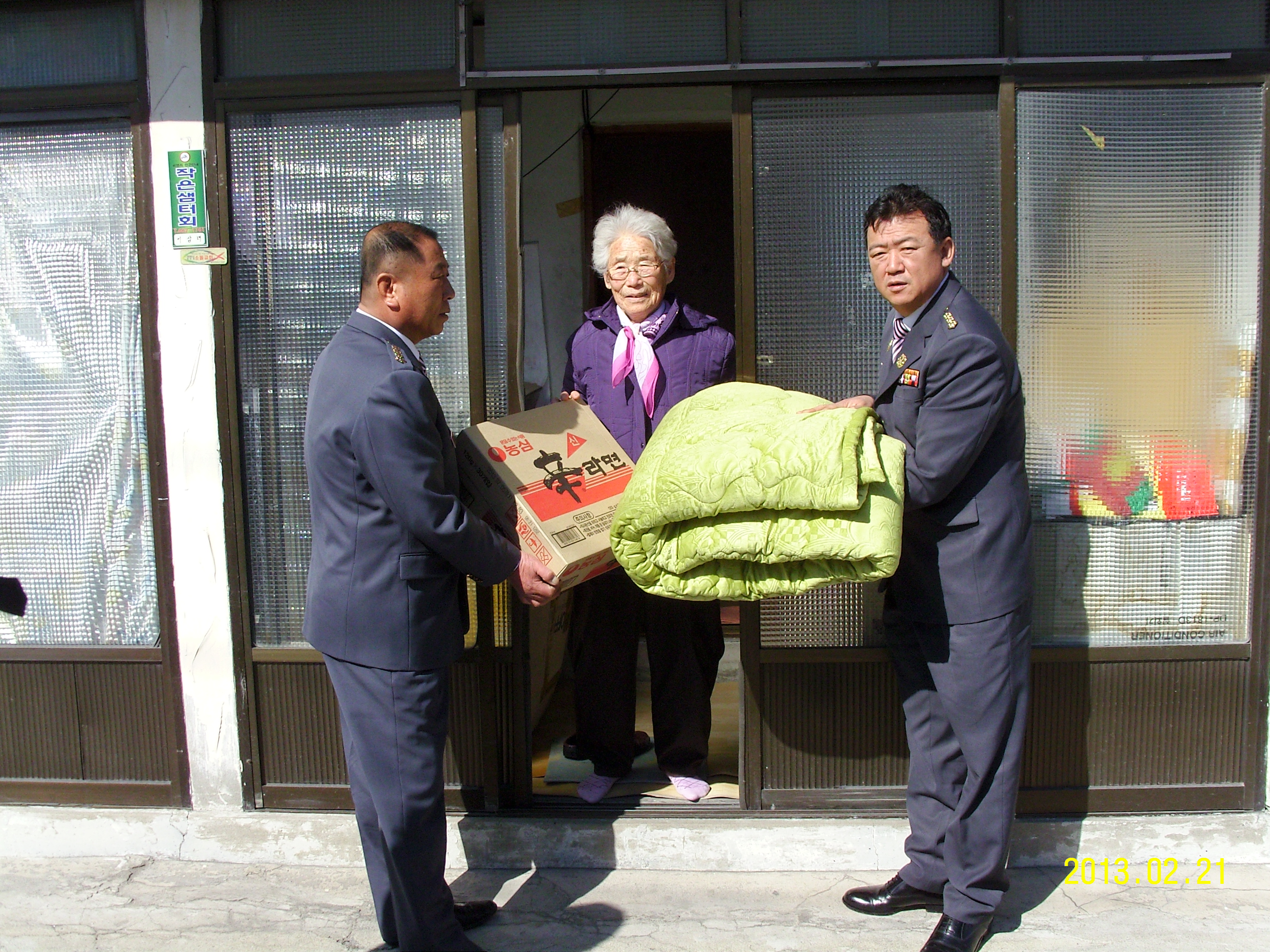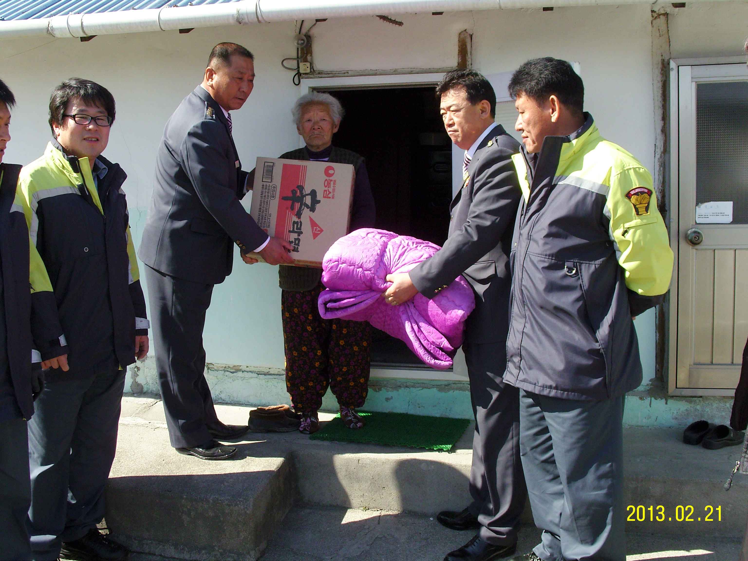 주문진의용소방대 전대원의 따뜻한마음을담아 불우한독고노인분15가정을찾아