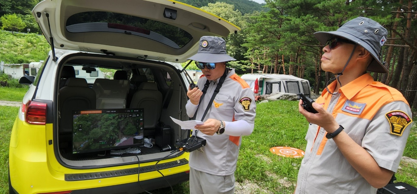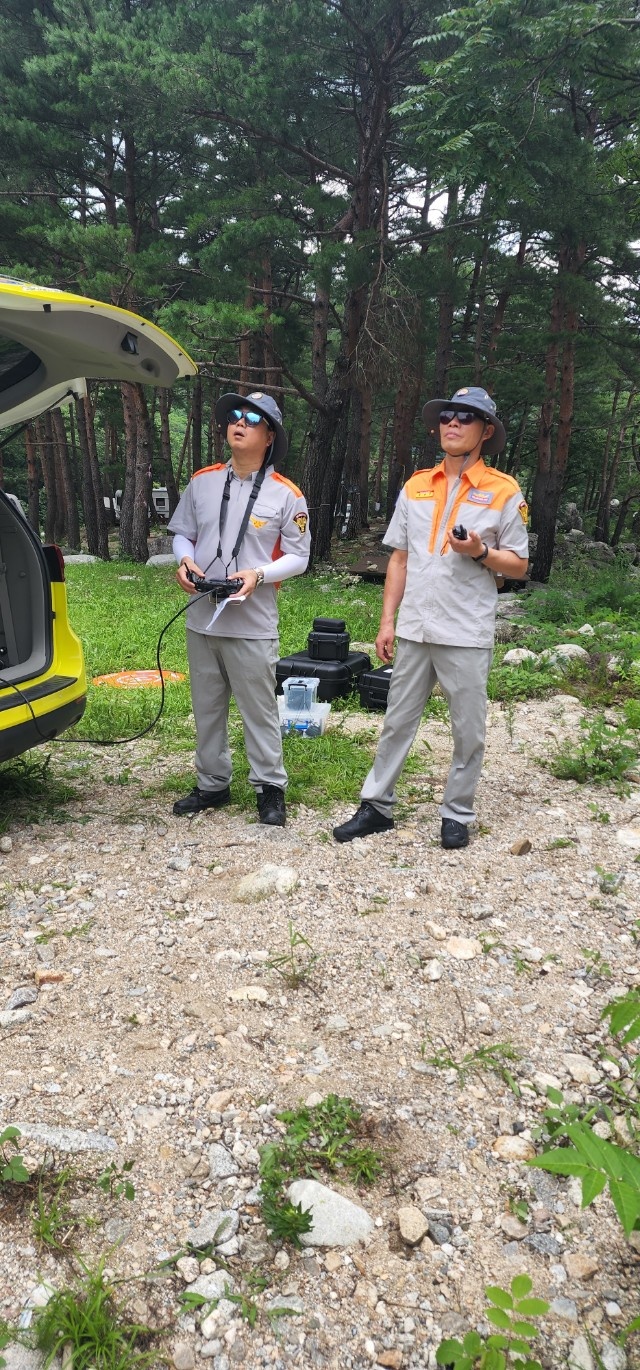 강릉남성의용소방대 드론 활용 물놀이 위험지역 안전순찰