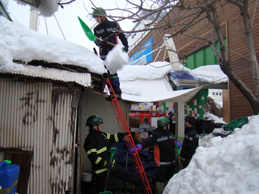 강릉소방서 중앙시장 지붕 제설작업 활동사항 입니다.