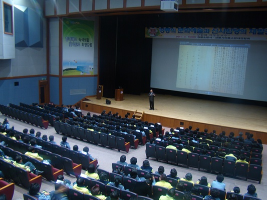 이어 강원대학교 교양학부 차장섭교수를 모시고 『강릉의 문화예술과 신사임당의 재발견』이란 주제로 특별강연을 실시하였다.