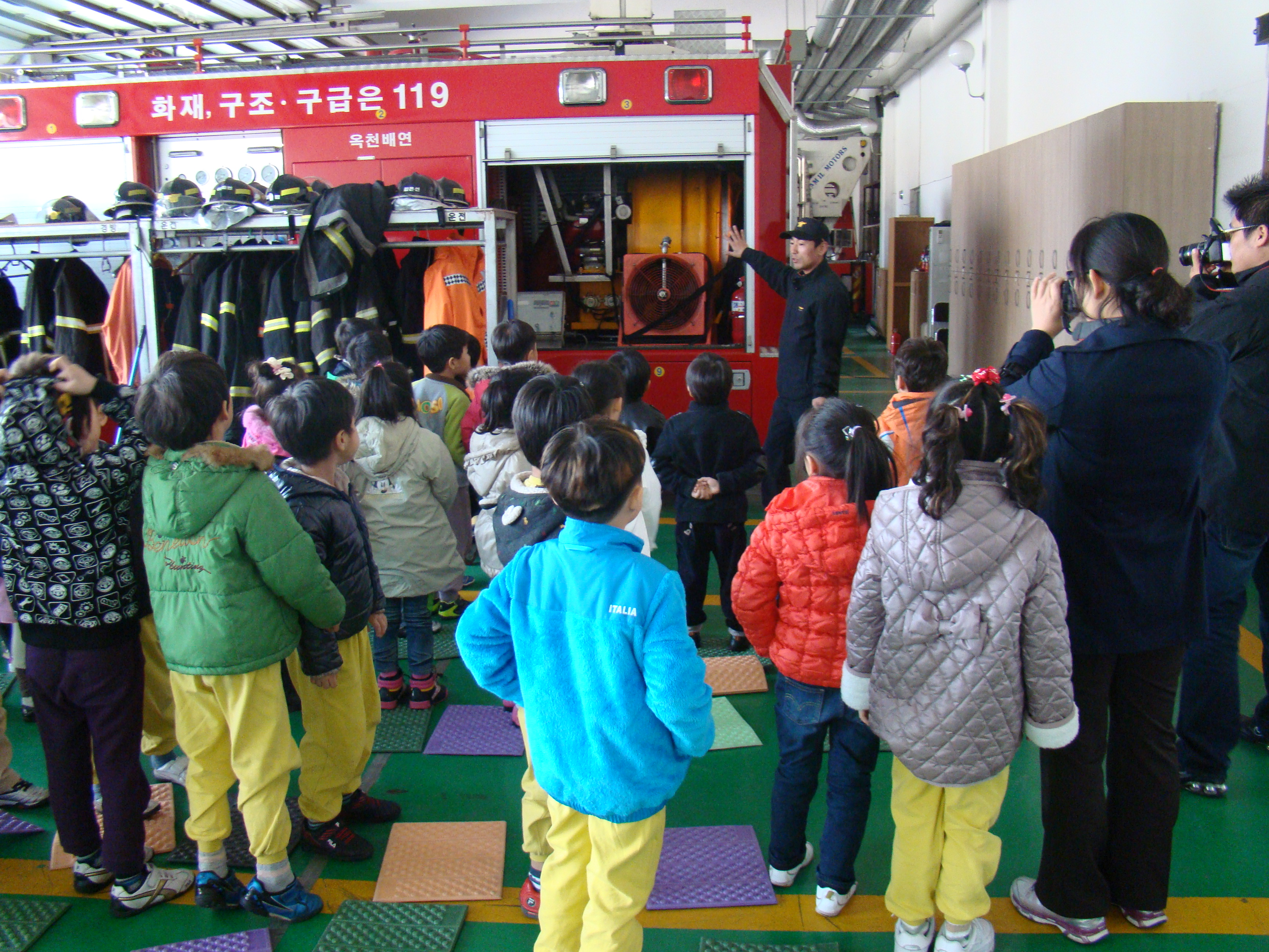 경포유치원 원생 및 교사들을 대상으로 화재 대피요령, 소화기 사용법 등의