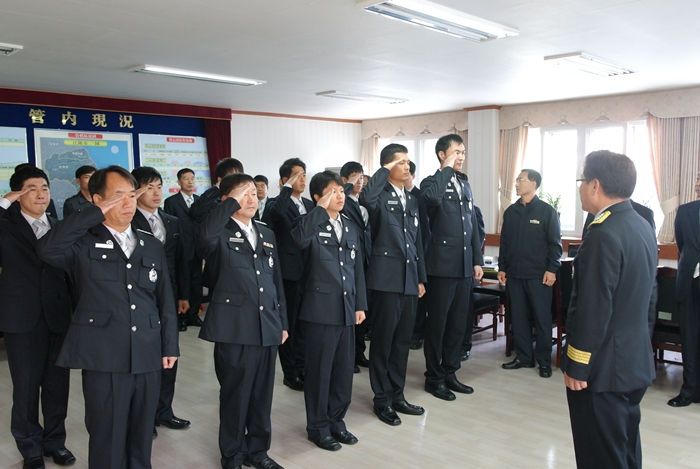서장실에서 신규발령자 5명을 포함하여 인사발령자 신고식을 가졌습니다.