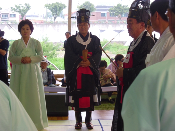 천년 축제 강릉단오제(중요무형문화재 제13호)가 열린 단오제단에서 강릉의 기관장들이 제관으로 참여하는