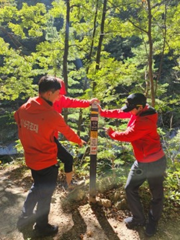 주요 내용은 ▲GPS, OruxMap, 산길샘 어플 등을 활용한 독도법 교육 ▲휴대폰 통화 및 119신고앱 사용가능지역 파악 ▲산악사고 다발지역 등산로 관리카드 재정비 ▲강원119신고앱 동시표출 구조훈련 ▲위치표지판 및 간이구조구급함 등 안전시설물 현황파악 및 정비 등이다.