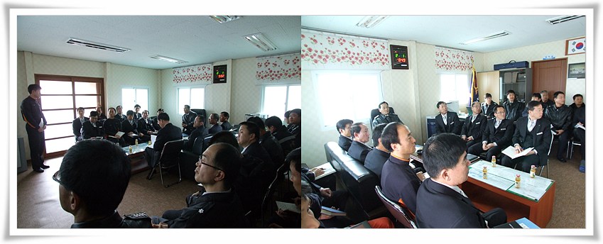 관할소방서 내 119안전센터별로 순회 개최하는 월간업무보고회는 2008년 11월부터 시작된 강릉소방서의 전통이 되어가고 있으며, 오늘 보고회에는 서장님을 비롯한 각 과 과장, 담당, 센터장, 옥계119안전센터 직원들이 참석한 가운데 2월의 각종행사, 현안업무토의에 이어 대형화재취약대상인 라파즈한라시멘트에 대한 화재진압영상도상훈련을 병행하였다.