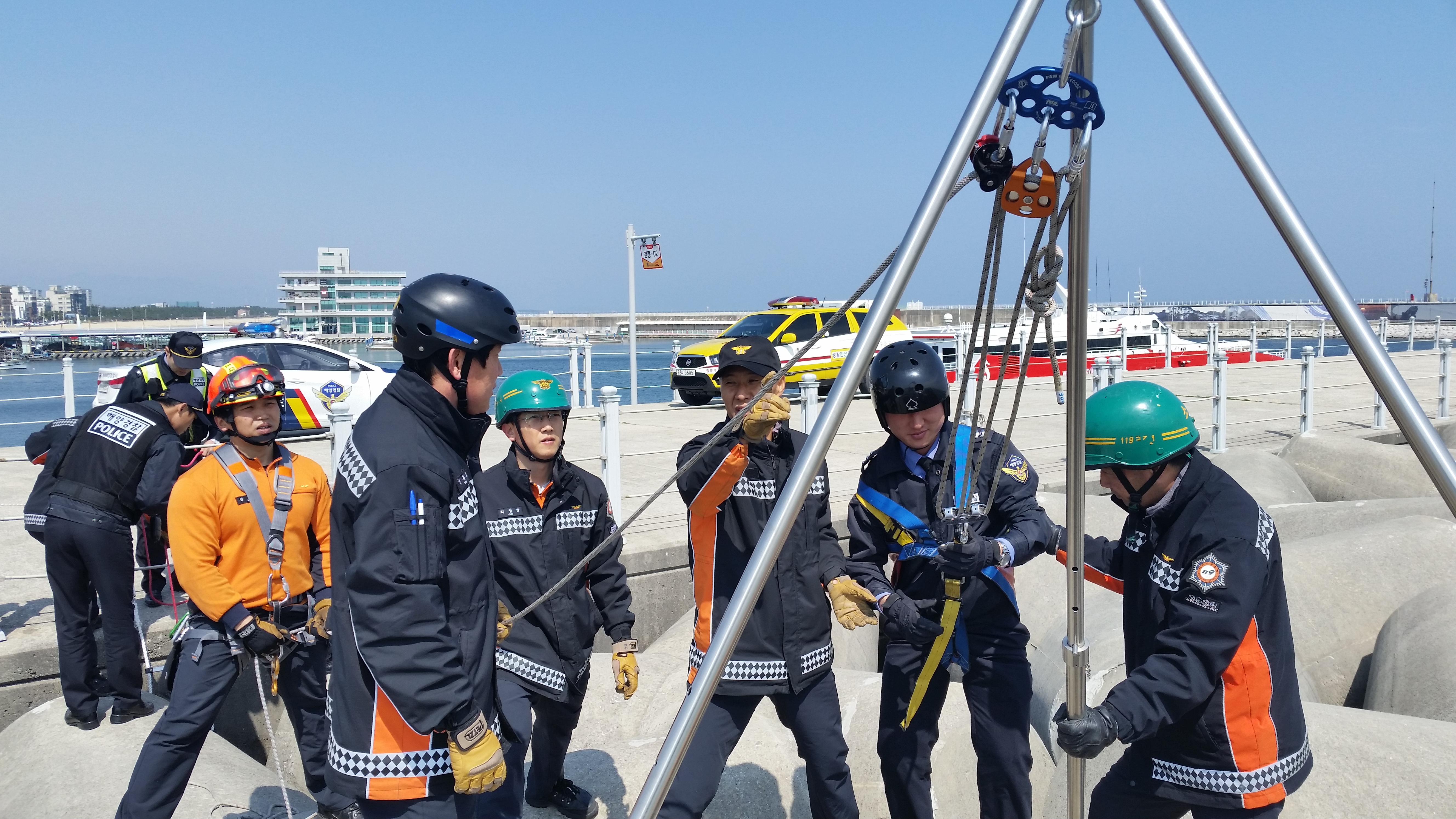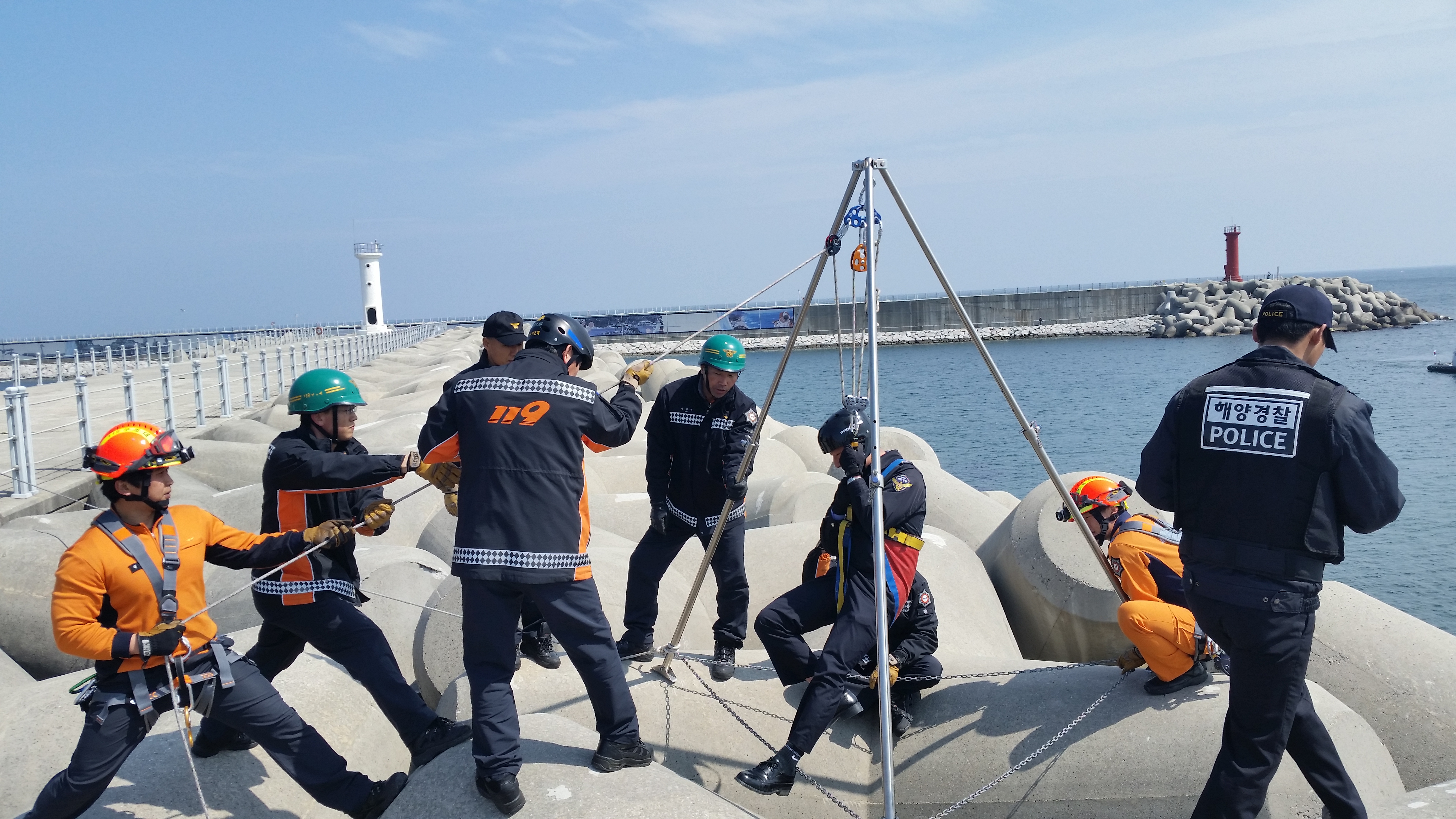강릉소방서 방파제(테트라포트) 인명구조훈련
