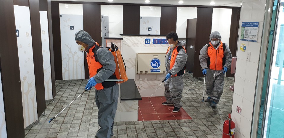 강릉 의용소방대원 코로나19 확산방지 방역 소독 실시