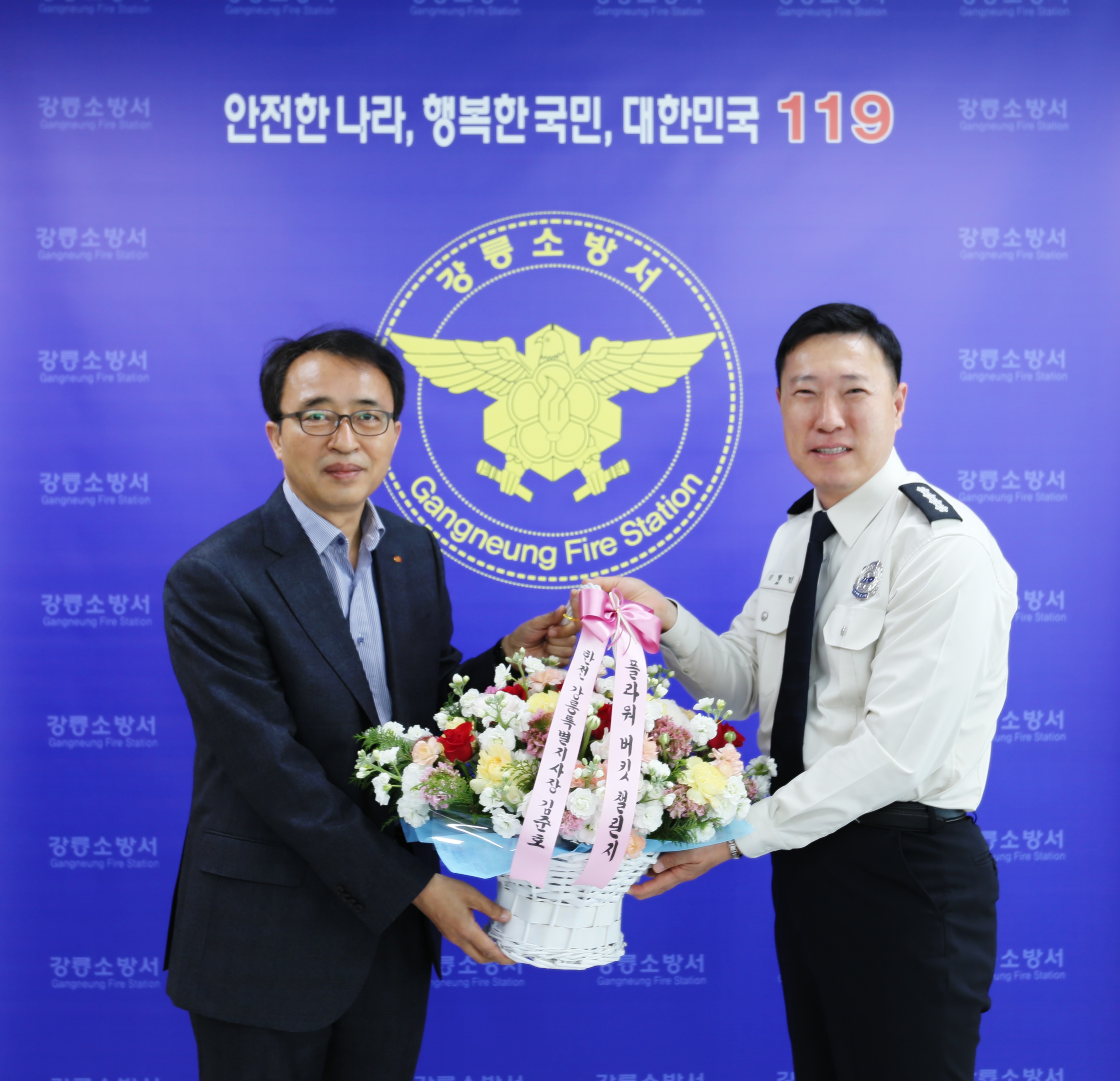 진형민 강릉소방서장님께서 코로나19로 인해 피해를 입은 화훼 농가를 돕기위한 '플라워 버킷 챌린지'에 동참하셨습니다.