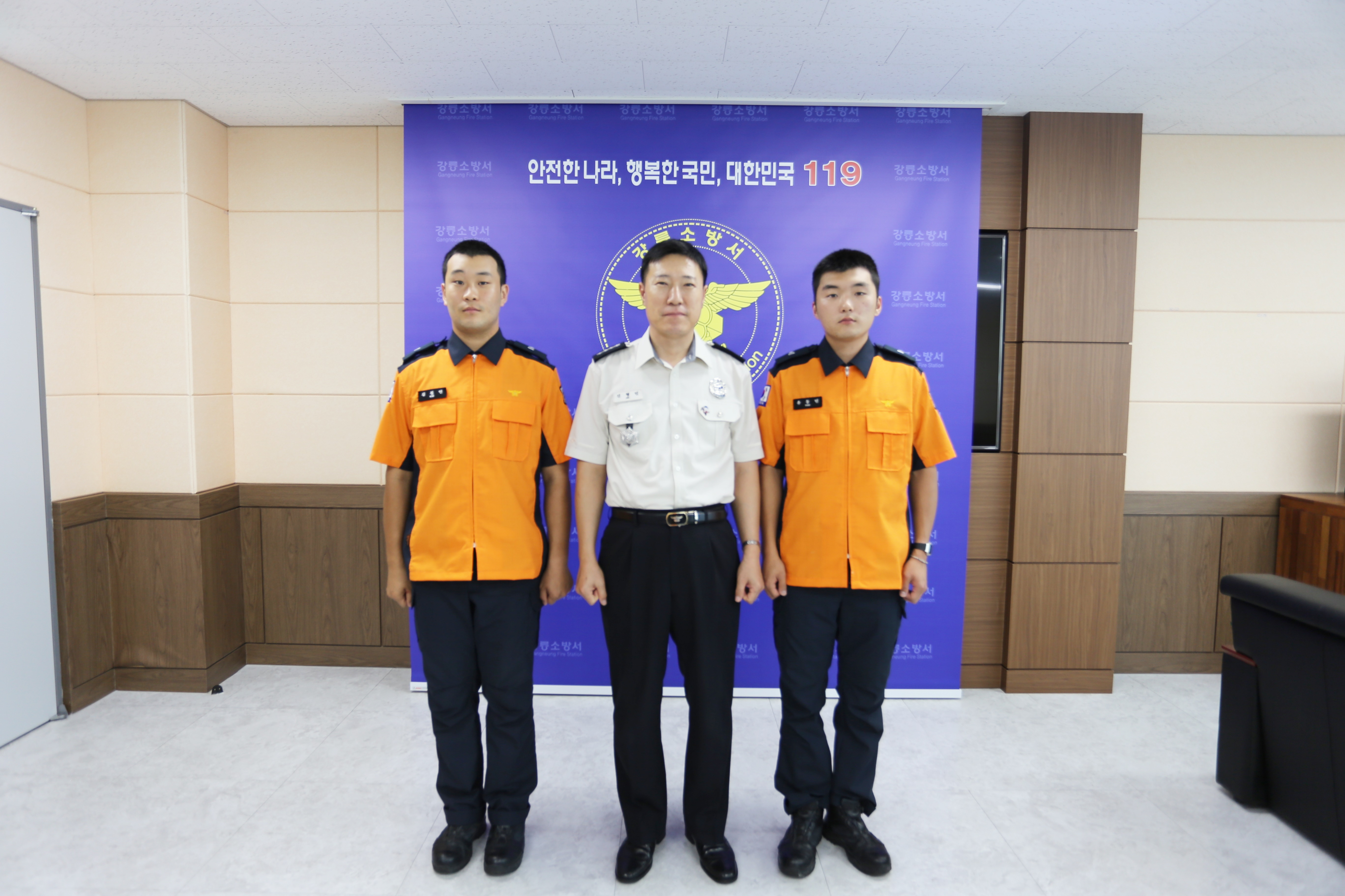 2020년 7월 27일 오후 1시 강릉소방서 서장실에서 의무소방원(이방 김철언, 유동민) 전입신고식이 개최되었습니다 !