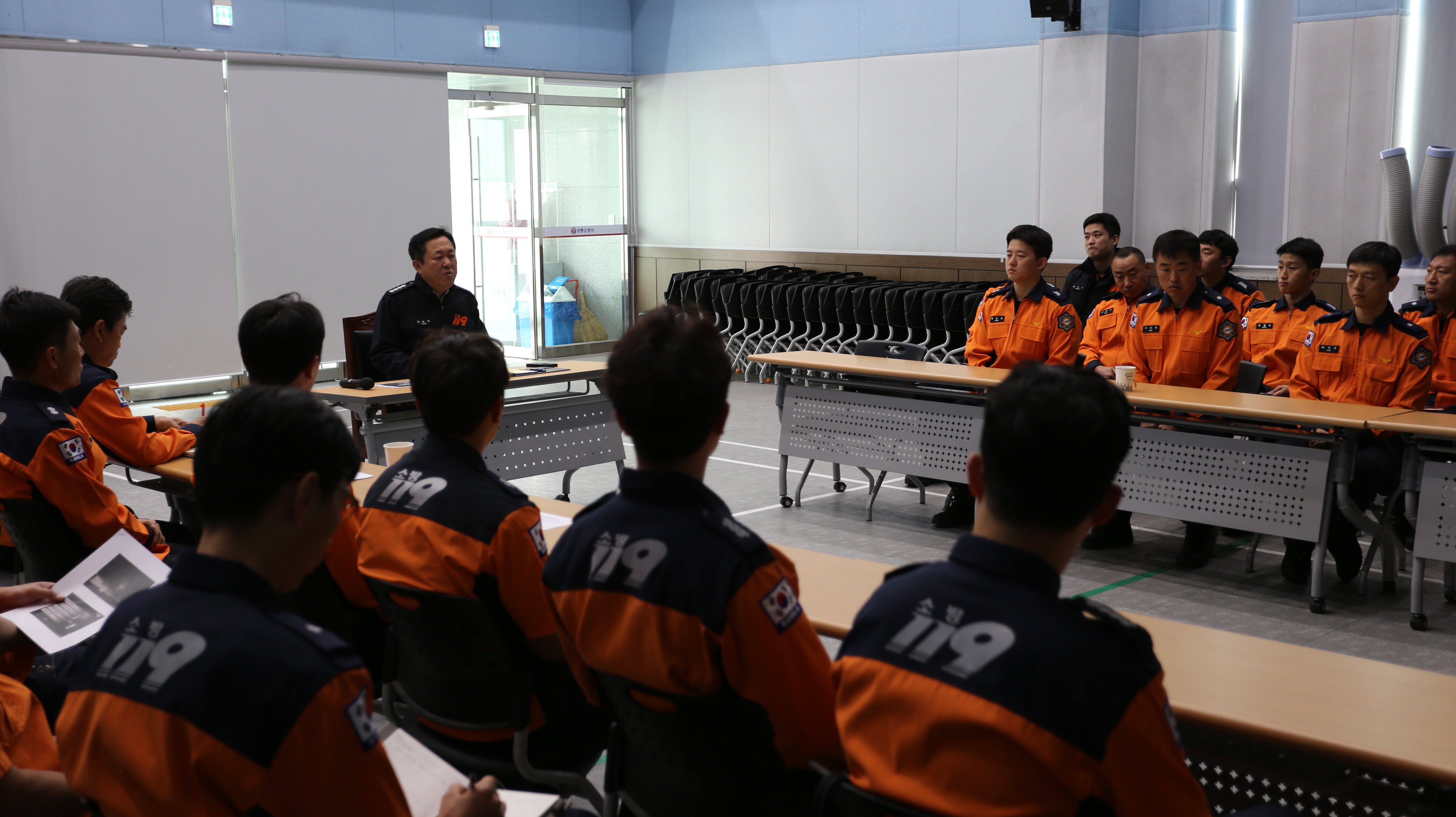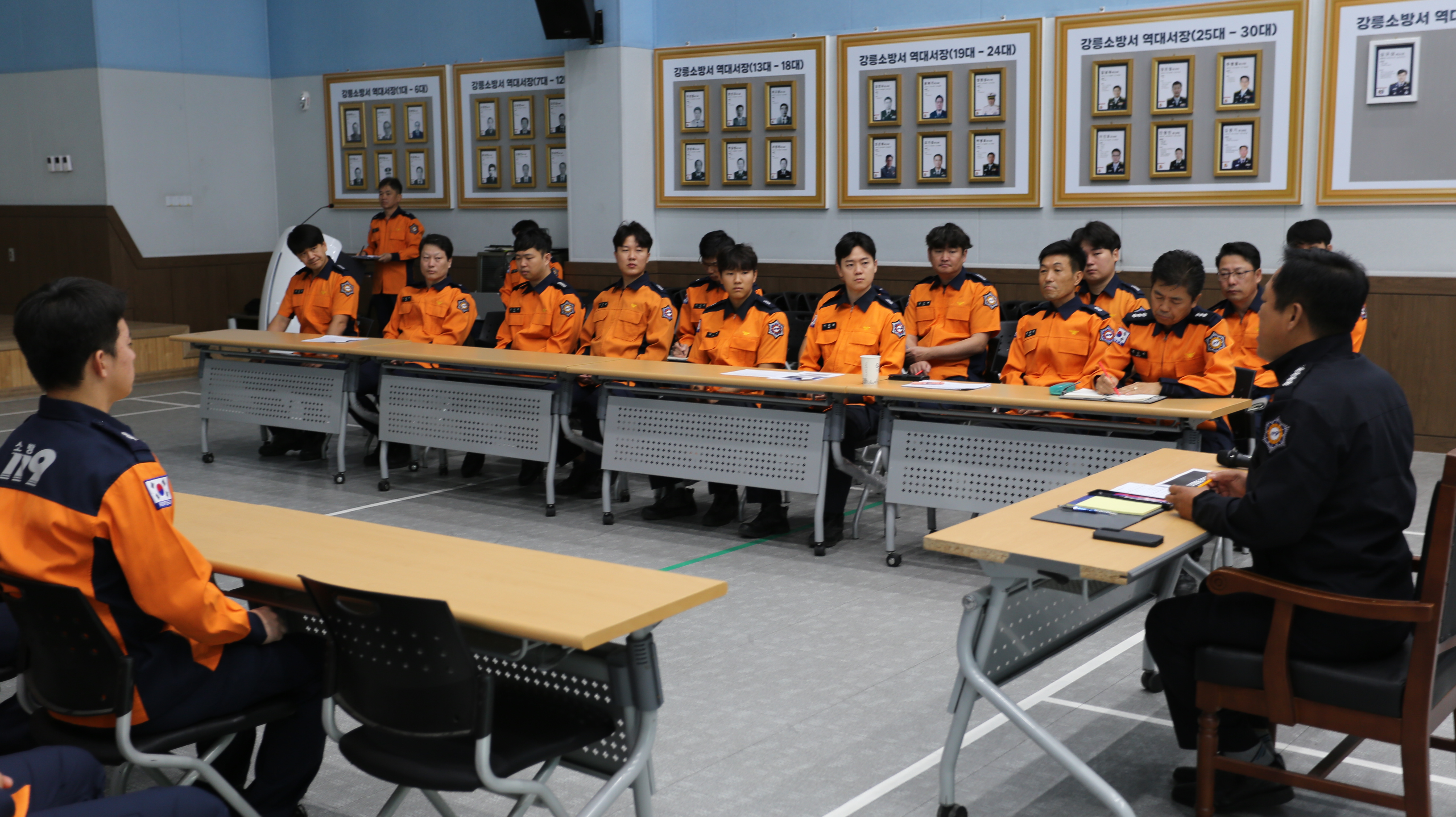 강릉소방서 대회의실 에서 출동대원 50여명이 참석한 가운데 지난 9월 26일 발생한 강동면 양계장 화재에 대한 현장활동 과정에 대한 토의로 진압활동 등 개선 방향을 모색하고자 소방활동 검토회의를 실시하였습니다.