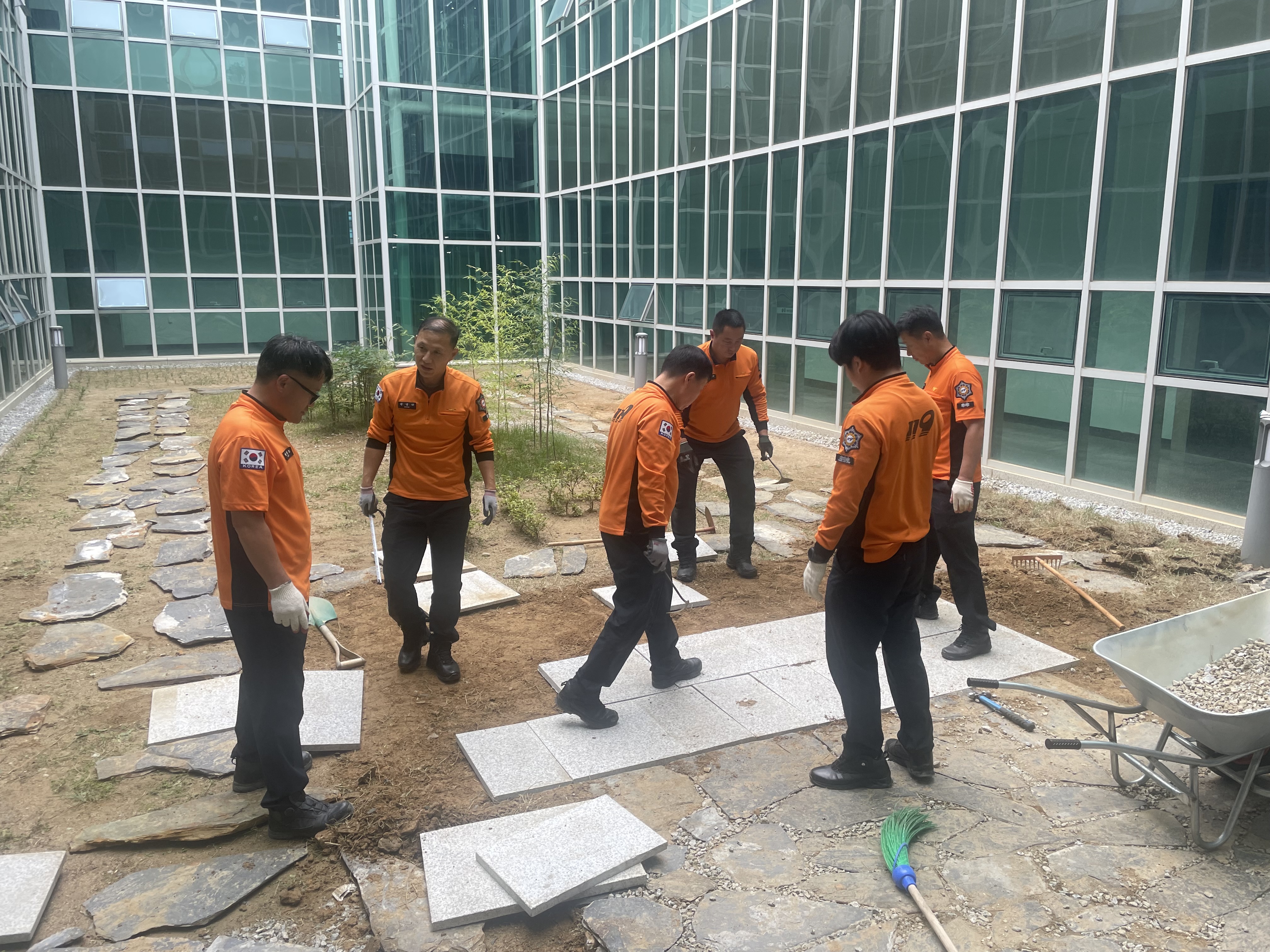 강릉소방서 청사 중정 공간을 활용하여 휴게공간 조성 및 직원 심신안정을 도모하고자 10.4~6. 3일간 디딤석 시공 및 평탄화 작업 등 청사 환경개선 작업을 실시하였습니다.