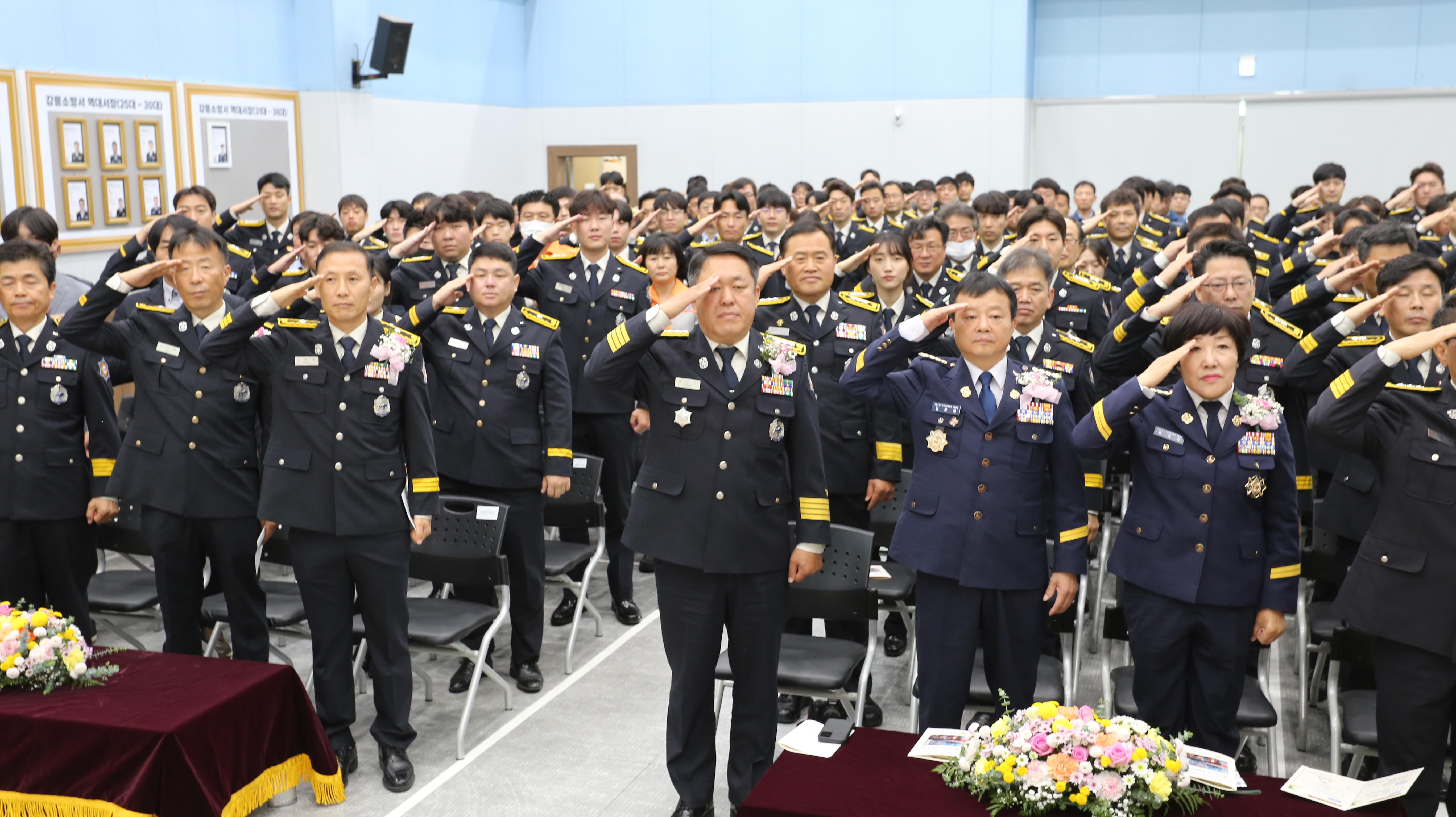 지난 9일 강릉소방서 소방의날 기념식 단체 사진입니다.