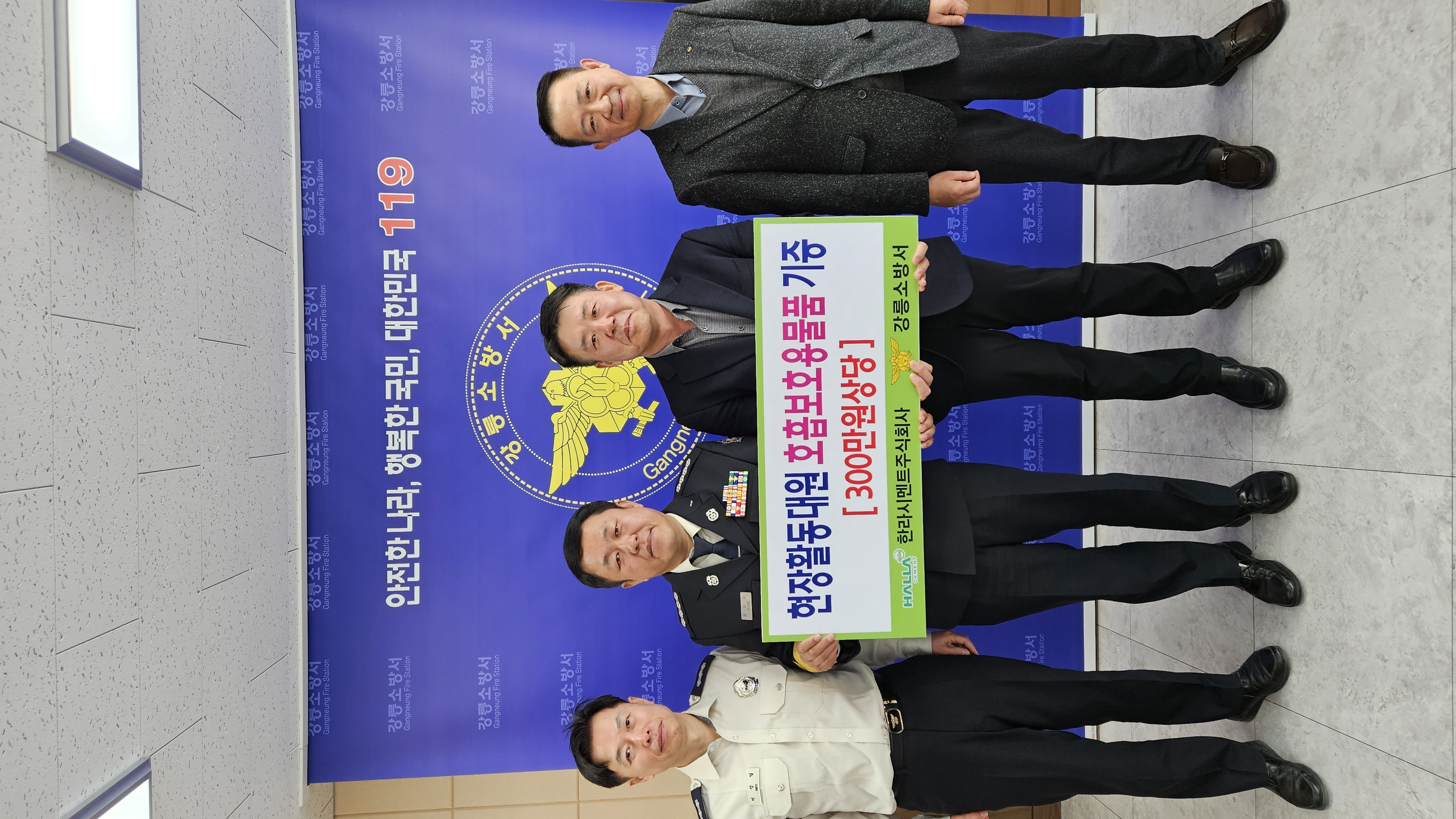 금일 강릉소방서에 한라시멘트(주) 김영환 생산본부장은 현장활동대원들의 안전을 위한 방진마스크를 기증 및 안전에 대한 교육을 실시하였습니다.