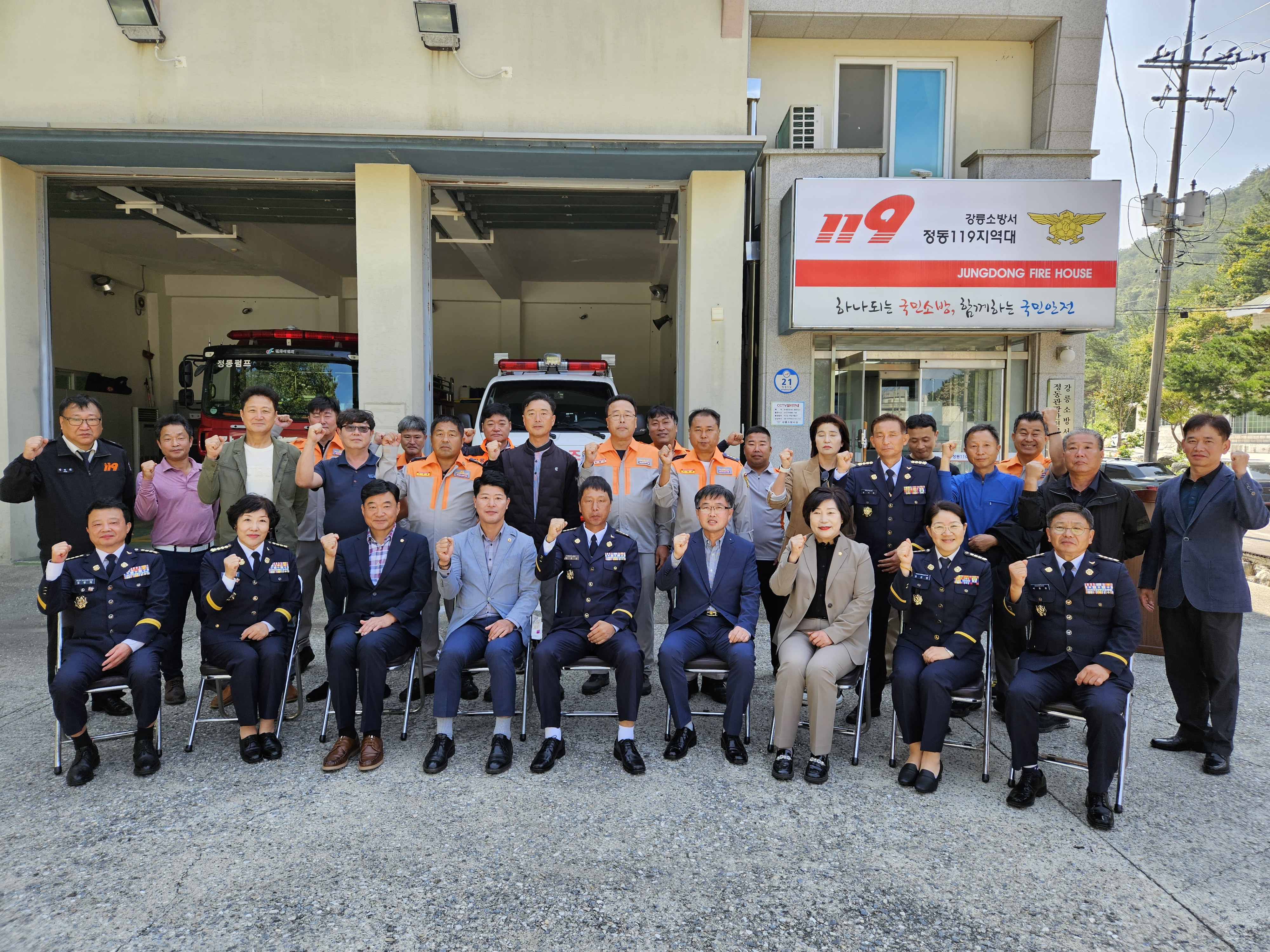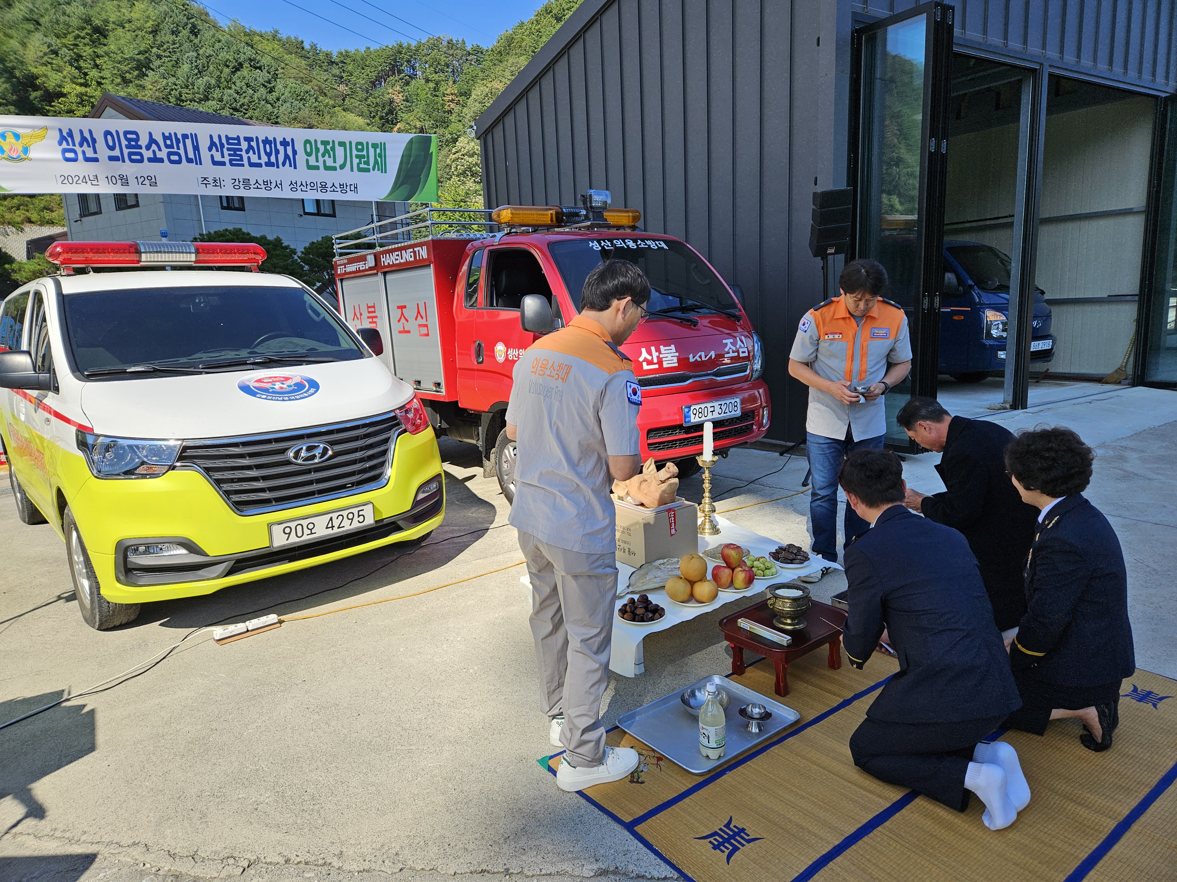 성산의용소방대, 정동관광안전전문의용소방대 산불진화차량 배치에 따른 안전기원제 실시