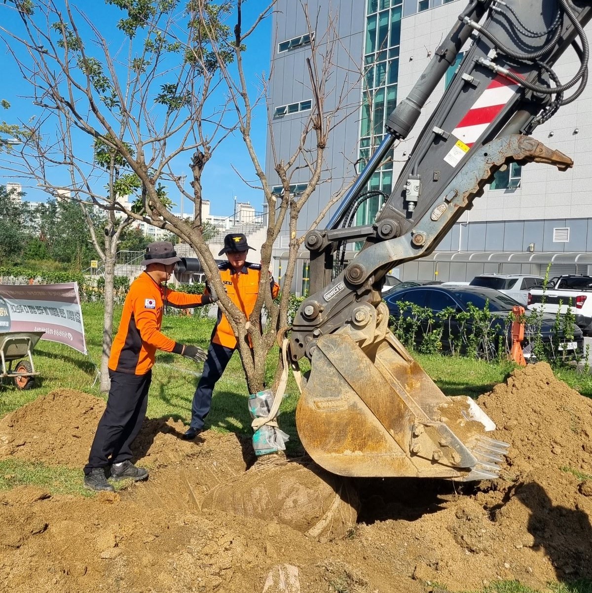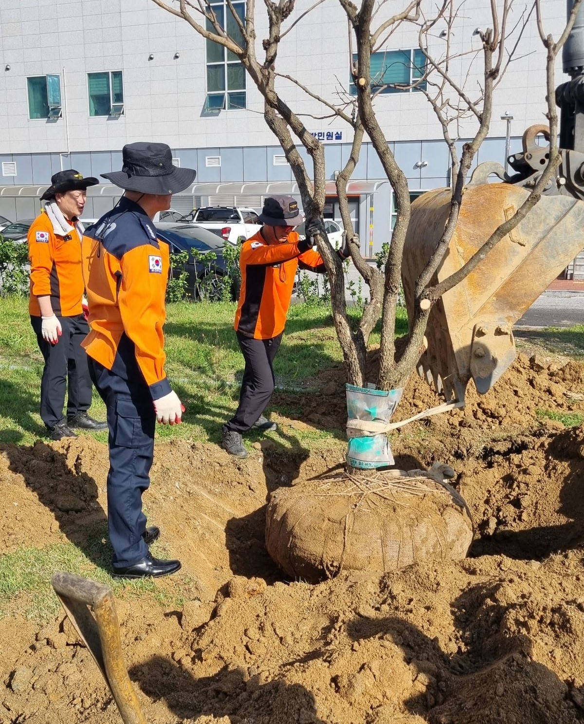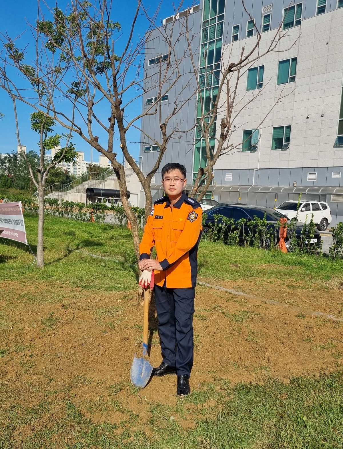 강릉소방서장 재직 기념 민원실 앞에 서장님 이하 5명 참여하여 감나무 식수를 진행하였습니다.