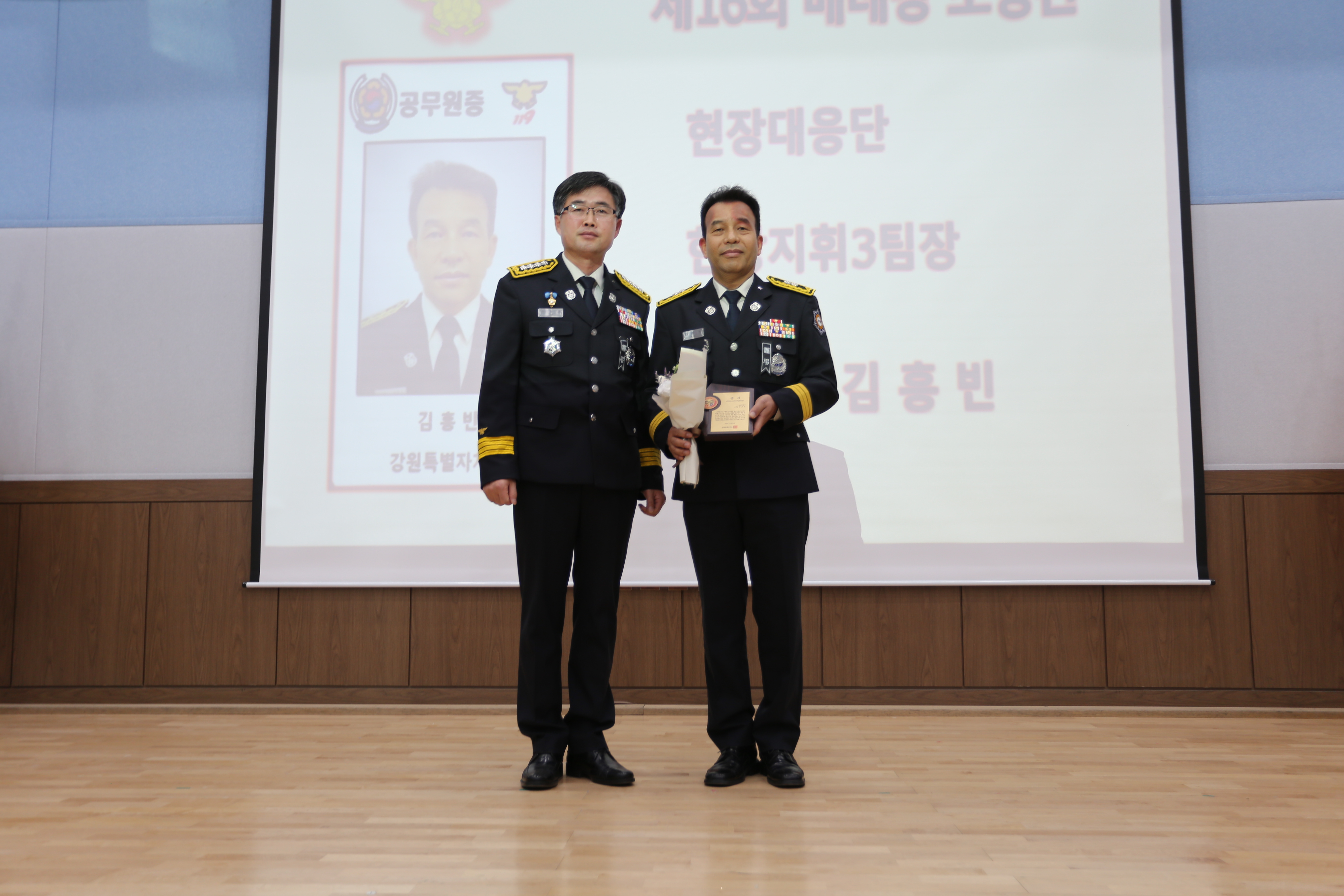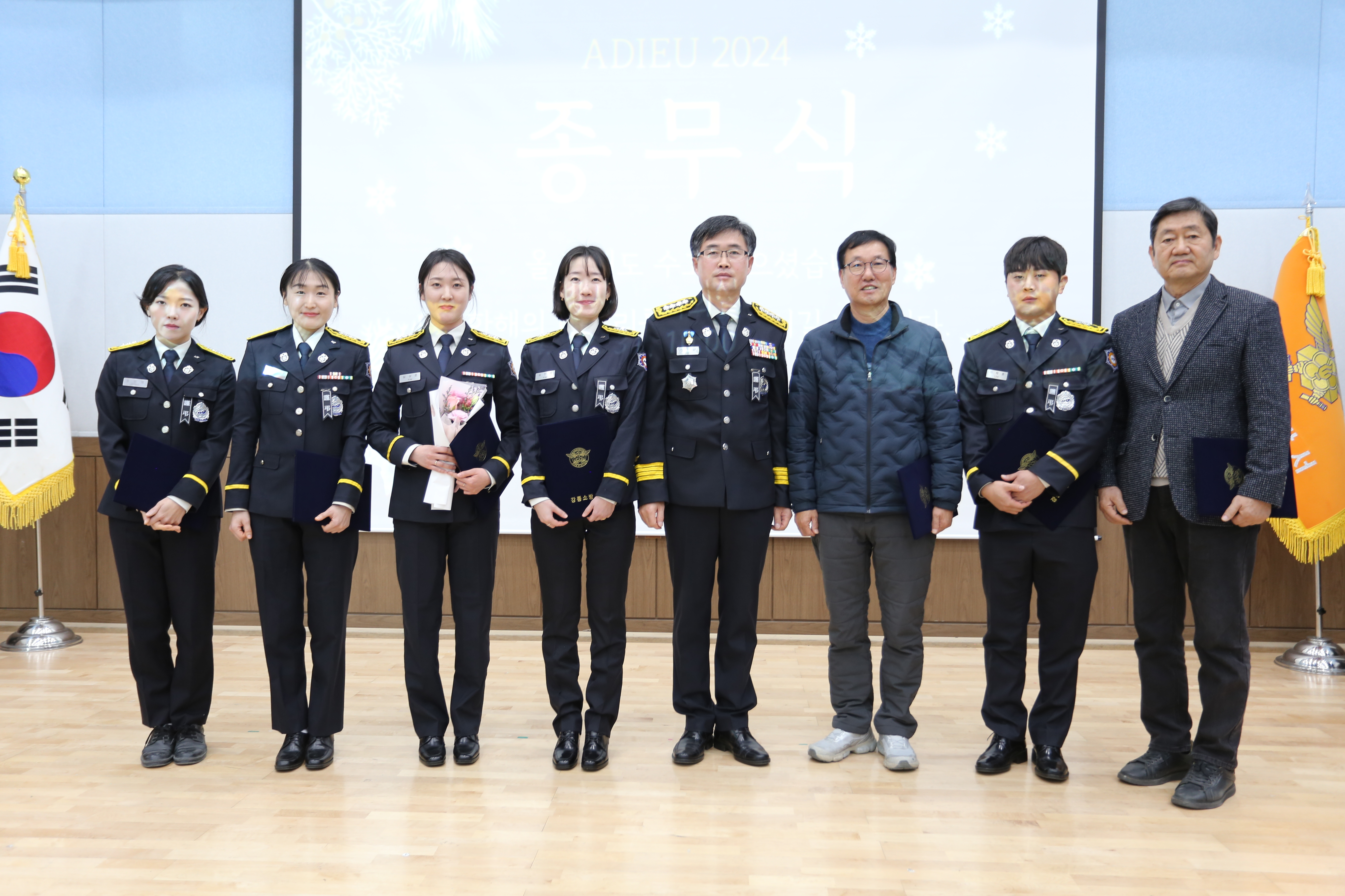 소방공무원 및 민간 수상자 17명을 포함한 80여명이 참석한 가운데 2024년 종무식이 있었습니다.