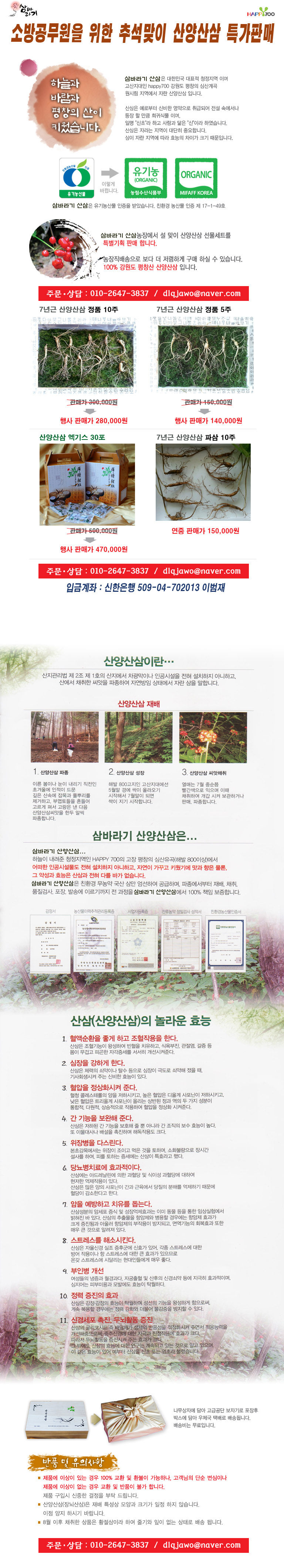 국민의 생명과 재산을 보호하는 소방공무원들께 삼바라기산삼이 드리는 추석 특가 산양산삼 상품입니다.