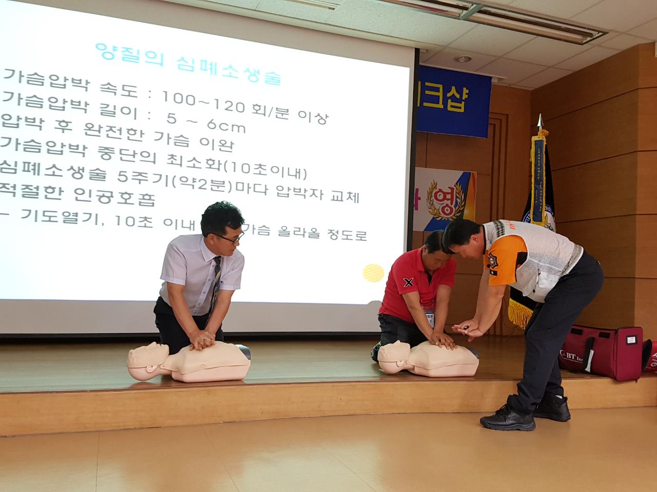 더운 날씨와 지연된 시간속에서도 온화하시고 밝은 목소리로 심폐소생술 교육을 해주신 강릉소방서