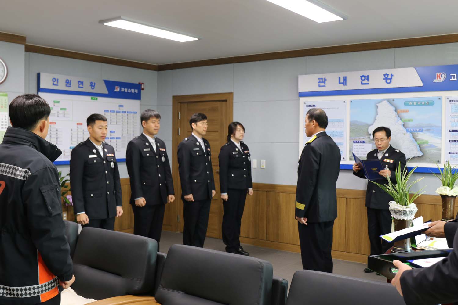 고성소방서 직원들의 진급식이 있었습니다.