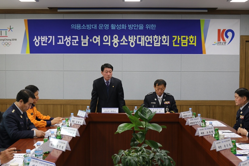 2016년도 상반기 고성의용소방대 연합회 간담회를 3월 3일 오후 4시에 고성소방서 소회의실에서 실시하였습니다. 이 자리에 김용복 도의원(초대 명예고성소방서장)께서 참석하여 자리를 빛내주셨습니다.