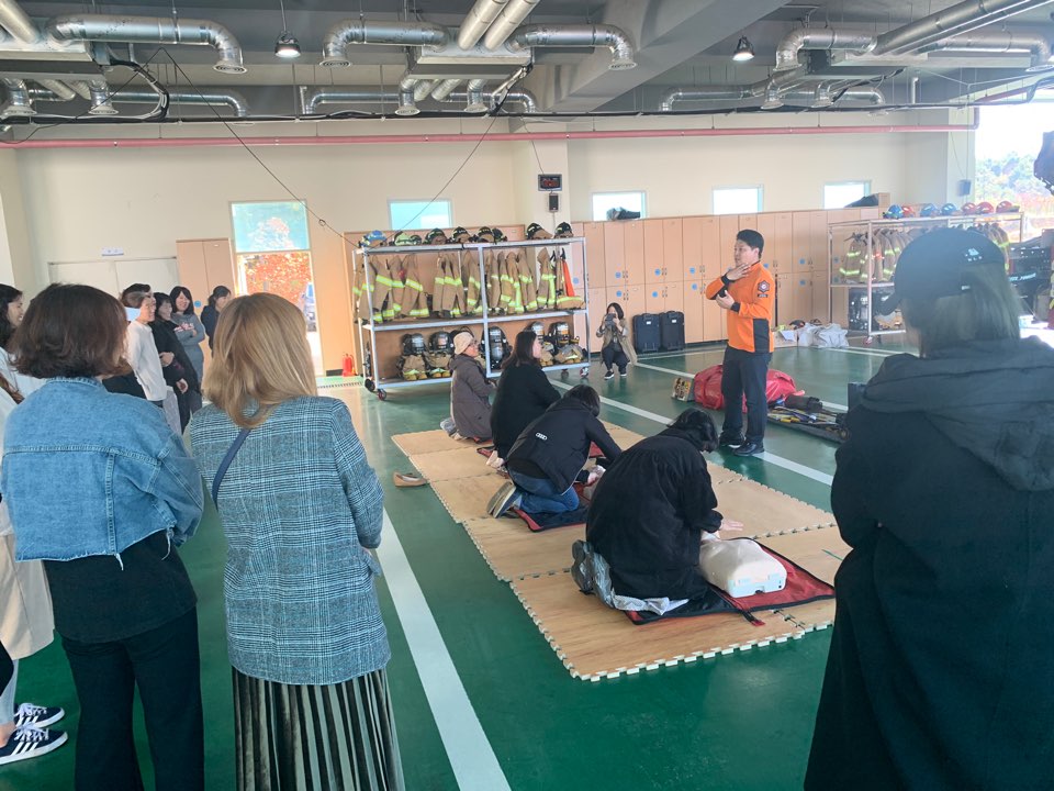 이날 소방서를 견학 온 학부모들은 심폐소생술을 직접 체험하고 평소 우리 주변에서 자주 볼 수는 있지만 긴급상황이 아니면 실제로 조작해보기 힘든 소화기를 직접 사용해보며 사용법을 익혔다.