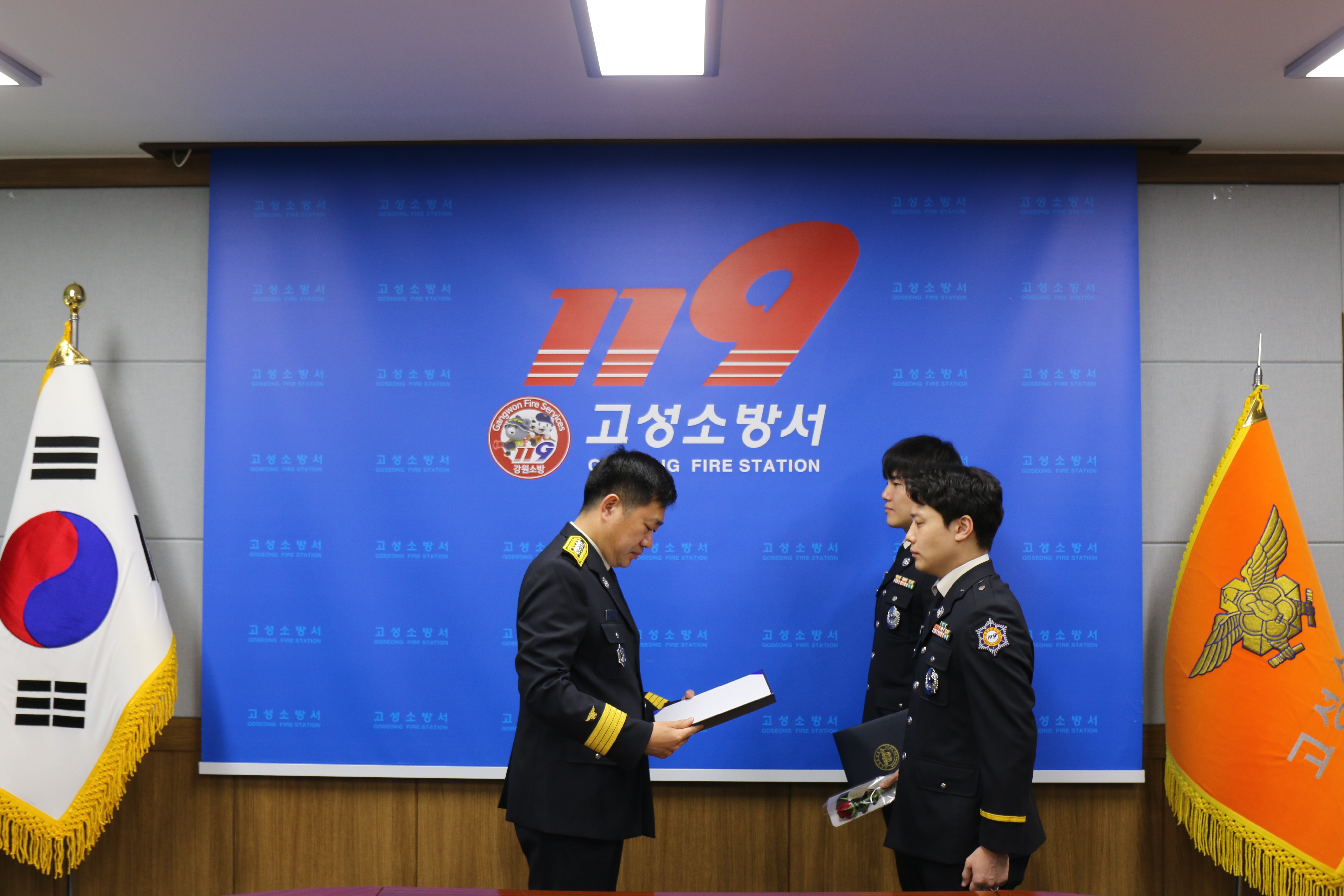 고성소방서(서장 김진문)는 3월 4일 오전 소회의실에서 소방교 최현규, 소방교 조성재 대원에 대한 승진자 임용장 수여식을 개최했다.
