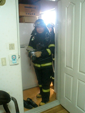 훈련을 반갑게 맞이해주시는 업주분과 화재초기진화의 중요성을 일깨우며 건물구조와 비상구