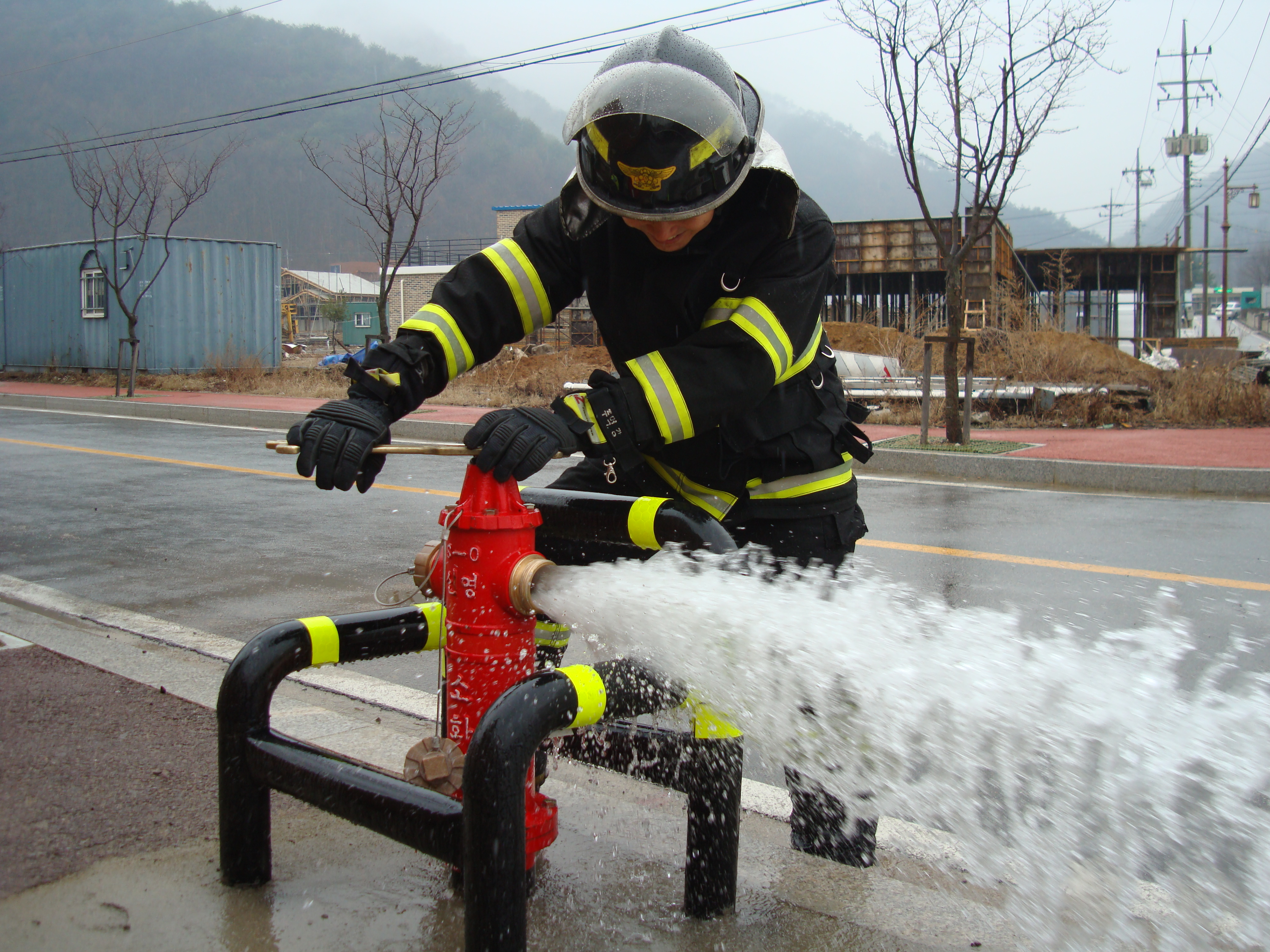 소화전 목욕시키기
