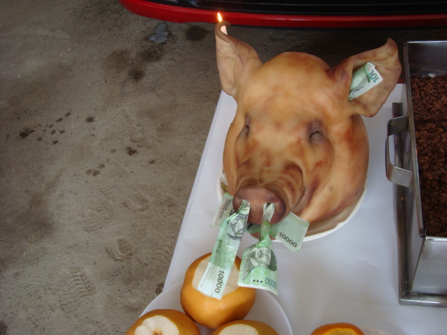 센터장 이하 전직원은 새식구가 된 홍천49호와의 안전하고 활기찬 활동을 기약하며 소정의 뇌물을 돼지에게 헌납했는데요. 처음 섭섭하게 인상쓰던 돼지가 이렇게 환하게 웃을 수가 없네요.