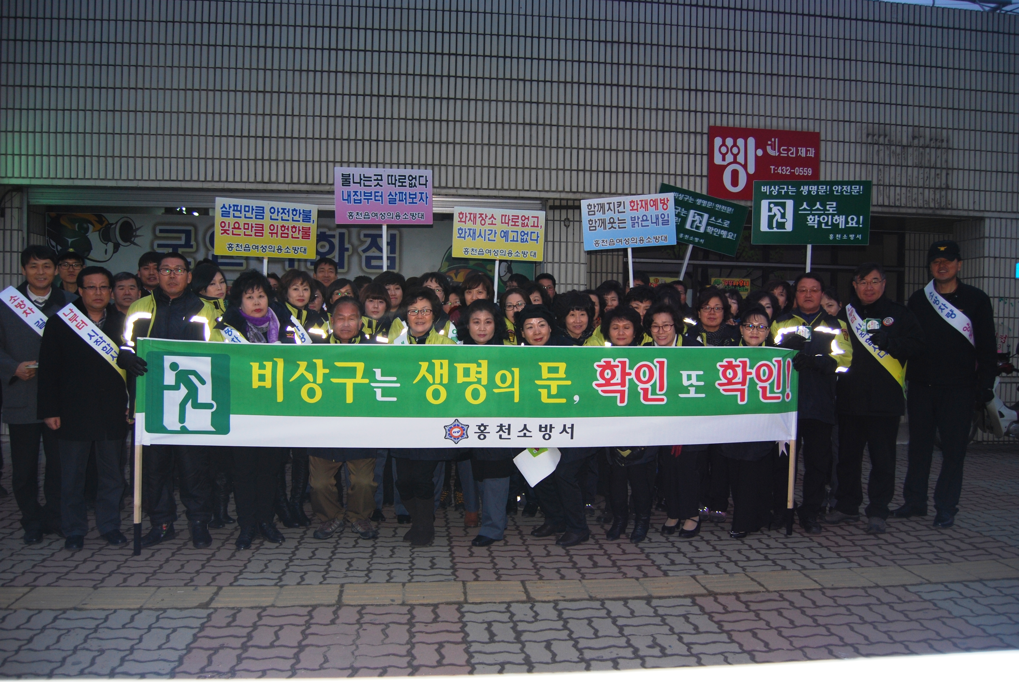 홍천소방서(서장 이종진)는 21일 오후 5시 홍천터미널 일대에서 자율적인 안전관리의 적극수행과 안전문화 확산 및 피난통보 환경개선을 위한「생명의 문 비상구 안전점검의 날」캠페인을 홍천소방서, 홍천군청, 홍천의용소방대등 약 70명이 참가한 가운데 실시했다.