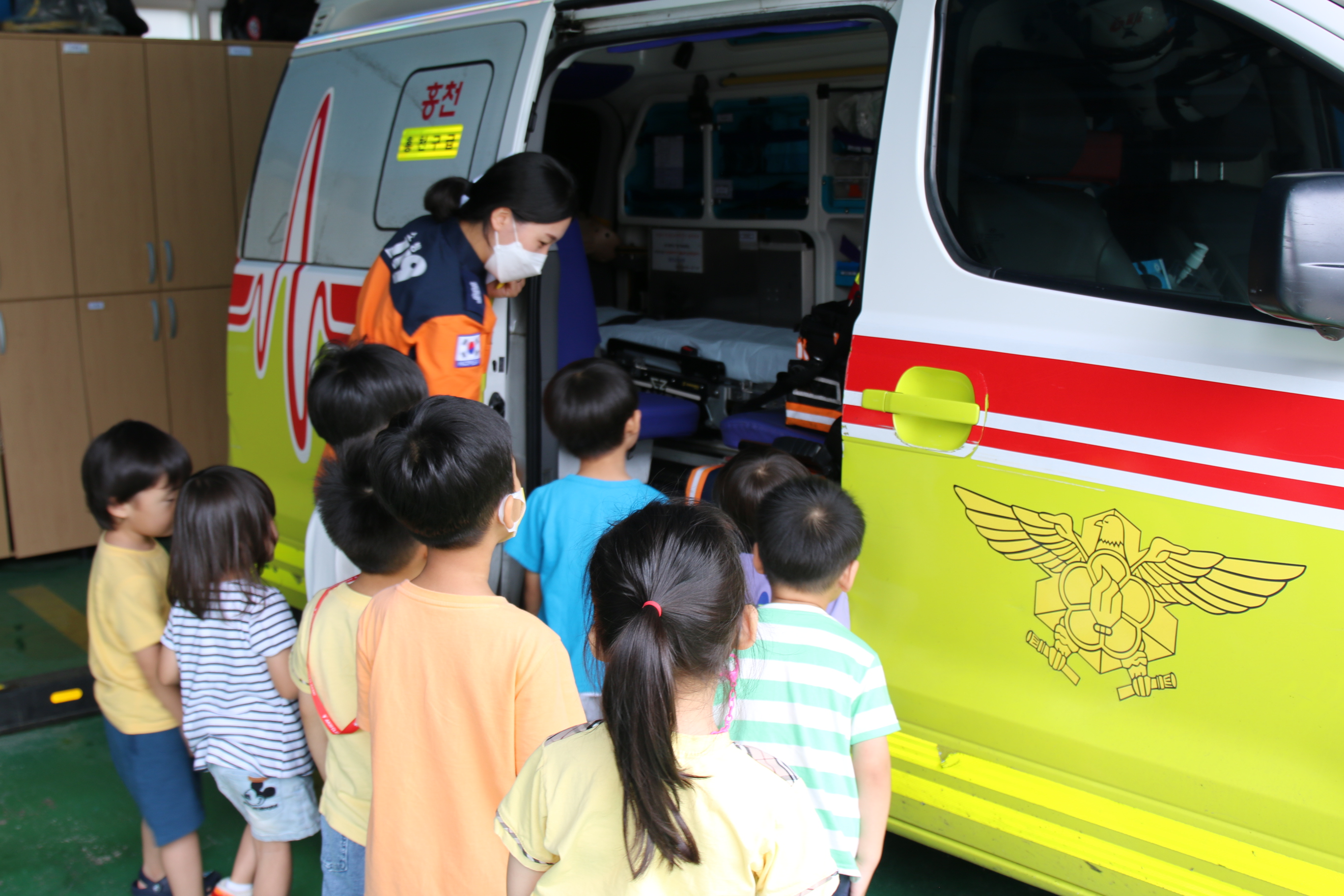 ★ 오늘 우리 홍천소방서에 어린이집 아이들 9명이 소방서 견학 및 소방안전교육을 받았습니다.