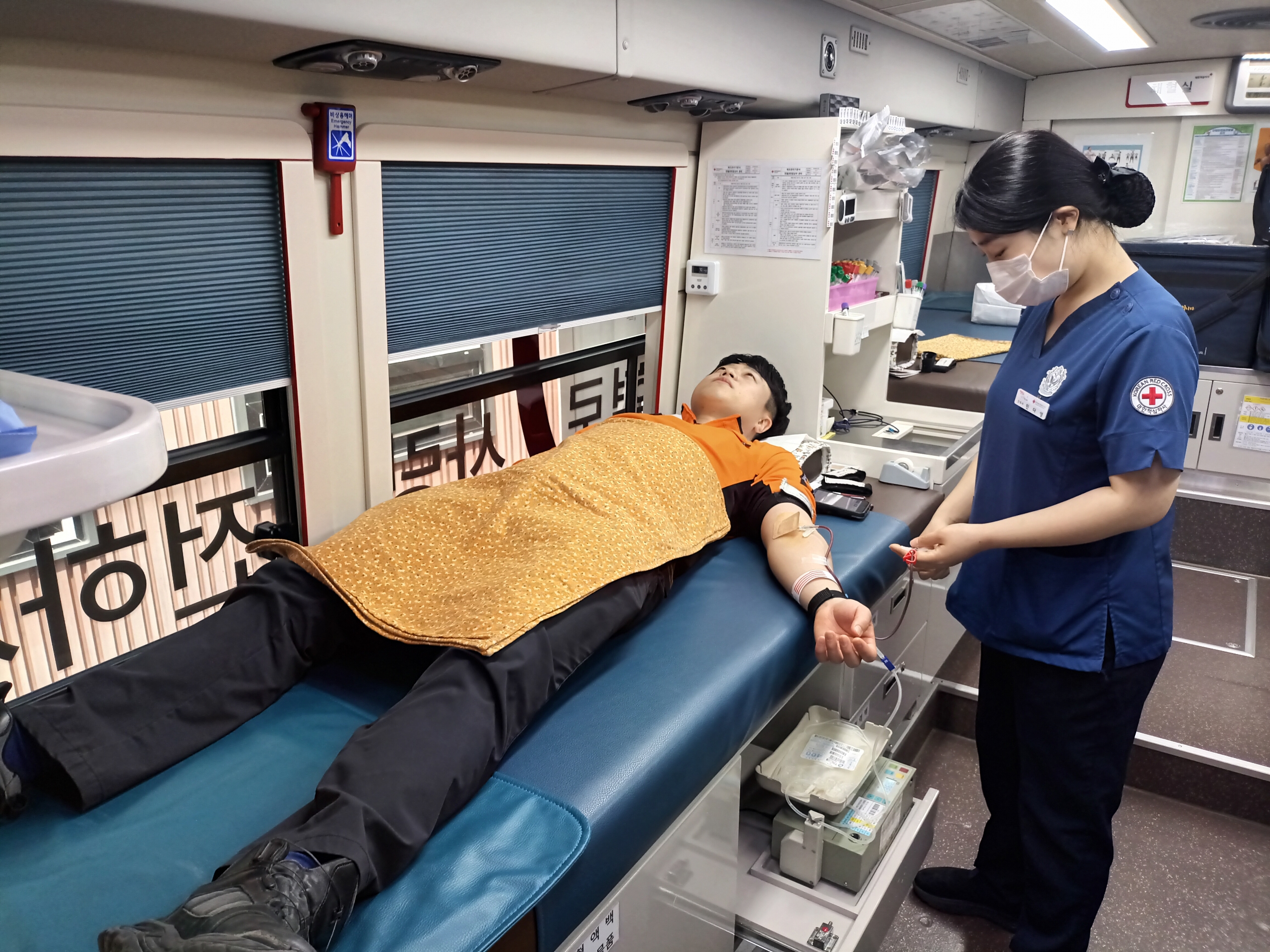 저출산·고령화로 인해 국내 혈액수급이 어려움을 해소하기 위해 강원혈액원에서 실시하는「생명나눔-사랑의 단체 헌혈캠페인」에 직원뿐만 아니라 의용소방대원들까지 적극 참여하였으며, 이번 캠페인은 헌혈버스가 직접 방문해 홍천소방서에서 진행되었습니다.