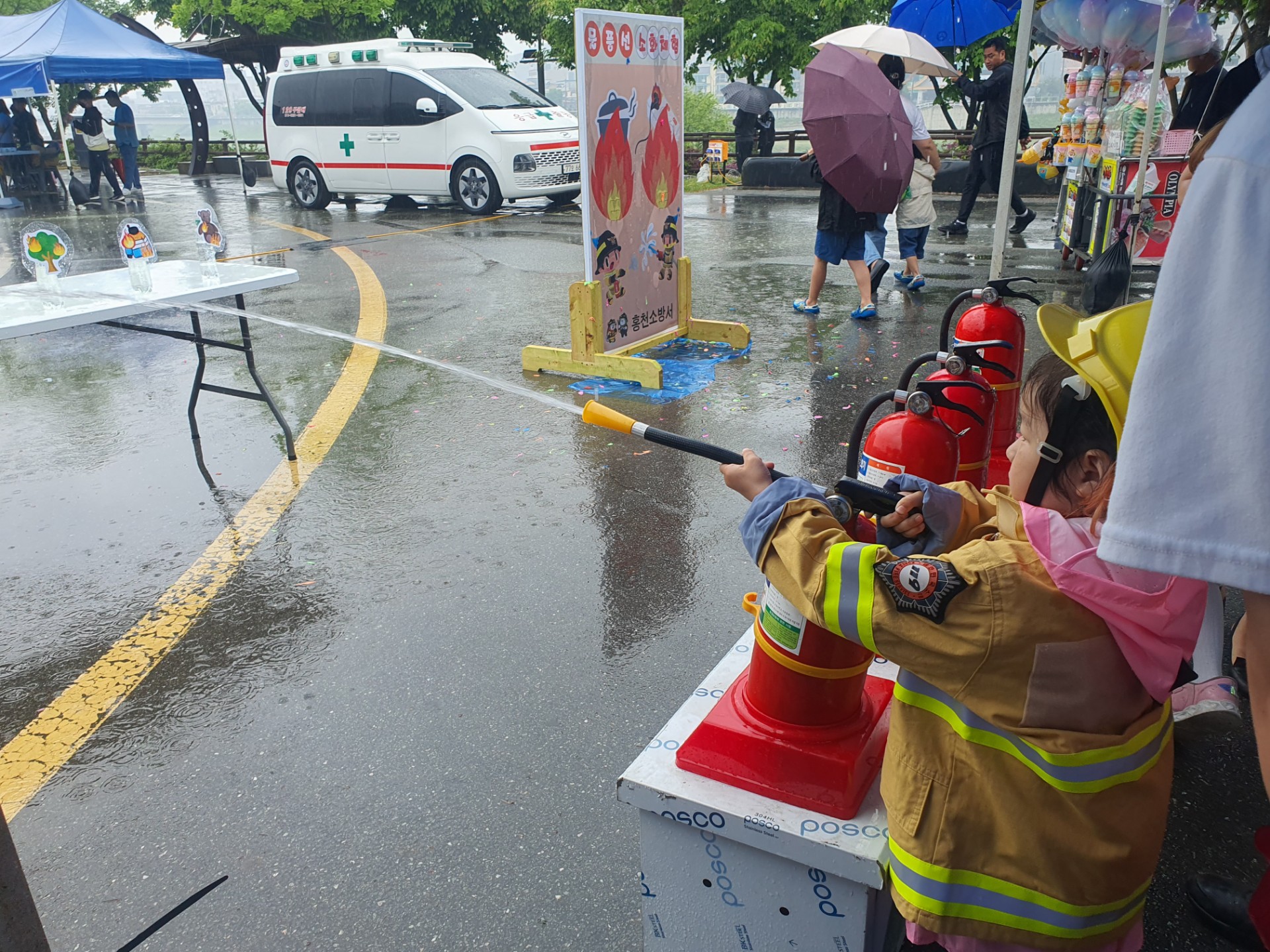 이번 체험장은 5월 5일, 제102회 어린이날을 기념하여 토리숲에서 소방력 28명을 동원, 오전 10시부터 오후 3시까지 열었고 비가 오는 궂은 날씨에도 많은 홍천 관내 아동·청소년 및 지역주민들로 행사장은 붐볐습니다.