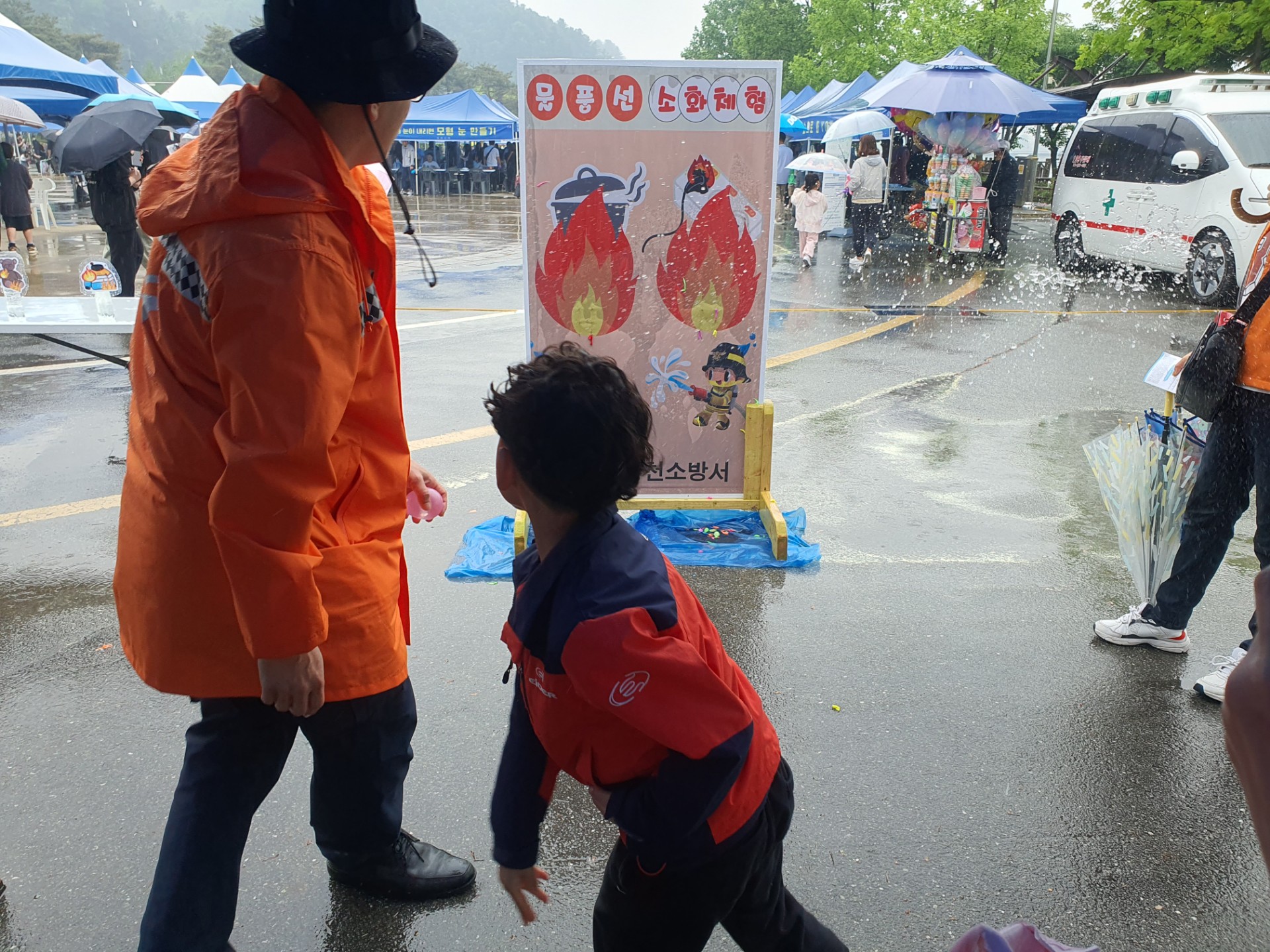 119안전체험장에서는 심폐소생술 체험을 통해 긴급 상황에서 생명을 구하는 방법을 배우고, 방화복을 직접 입어보며 기념사진도 찍을 수 있는 포토존이 마련됐습니다. 소방 및 생활안전에 관한 OX퀴즈대회, ‘불나면 살펴서 대피’ 퍼즐 맞추기 게임, 물 소화기 체험, 물풍선 소화체험 등 다채로운 프로그램으로 구성되어 있어, 어린이는 물론 청소년과 어른들도 함께 즐기며 배울 수 있었습니다.