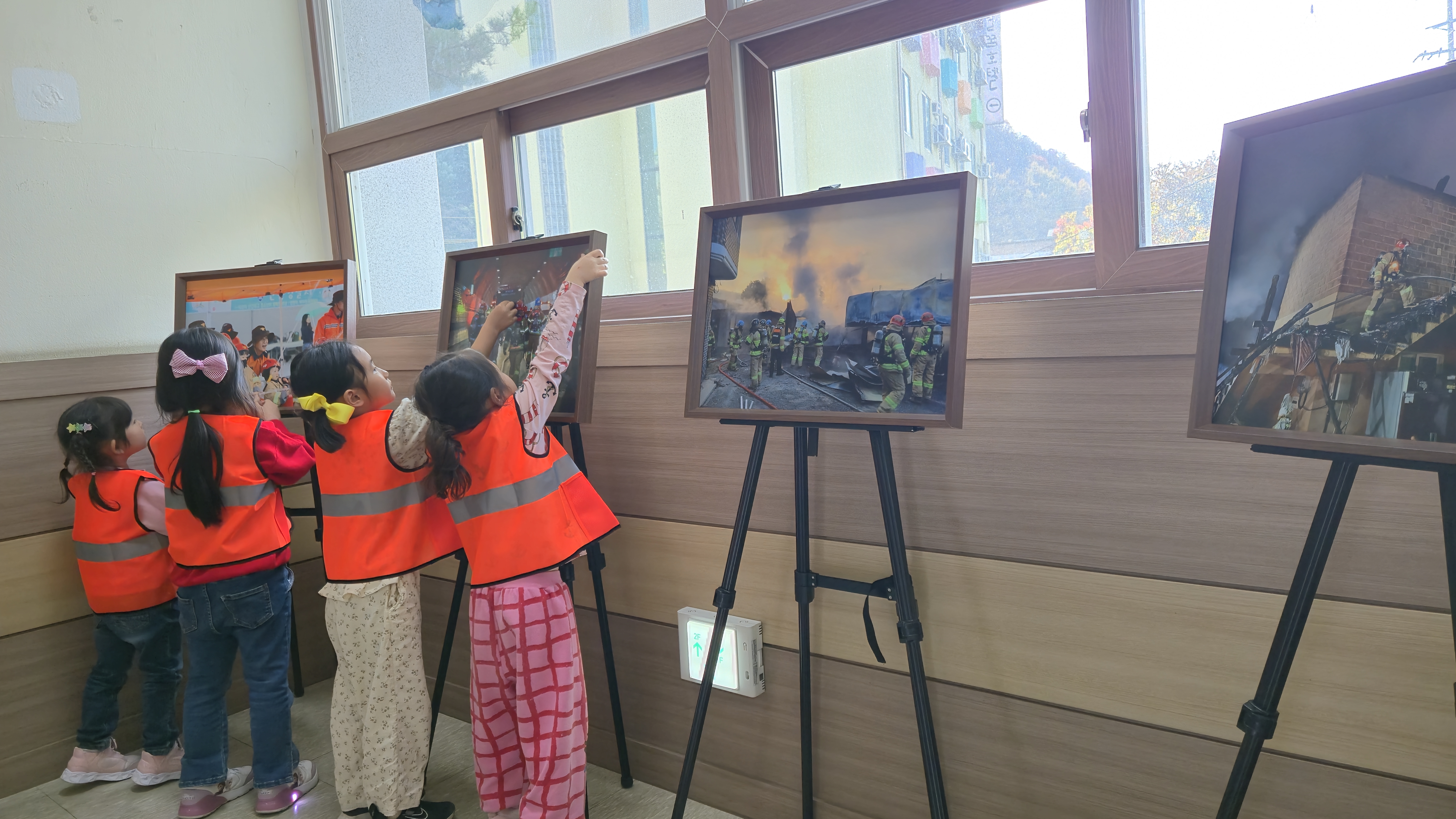 교육은 소화기 사용과 옷에 불이 붙었을 때 대처법, 어린이 터널 이용 화재 대피 체험, ‘살펴서 대피’ 의 퍼즐을 맞춰보는 등 직접 체험을 해보며 화재 발생 시 대처요령 등에 배웠다. 2024년 소방안전공모전의 수상작 10점을 전시하는 전시회도 진행했다.