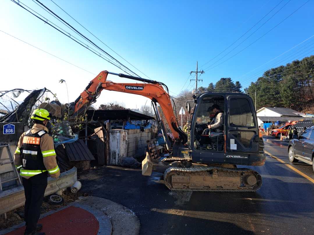 화재는 2시 51분에 초진이 완료됐고, 7시 5분에 완진됐으나, 주택 내부에 많은 물건이 적치되어 있어 잔불 정리에 굴삭기가 필요한 상황이였으나 섭외가 어려워 잔불정리에 시간이 소요됐다.
