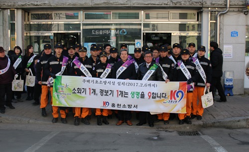 홍천소방서(서장 이종진)에서는 설 명절을 목전에 앞둔 1일 오전 11시부터 16시까지 전통시장을 찾은 시민들을 대상으로 주택소방시설 설치홍보 캠페인(우리집 소화기 1개 경보기 1개는 생명을 구합니다, 소화기 거꾸로 들기(UP&Down)) 캠페인 및 비상구 물건적치금지 및 경량칸막이 안내 스티커등을 배부하며 범국민 안전문화 확산에 기여하고자 하였다.