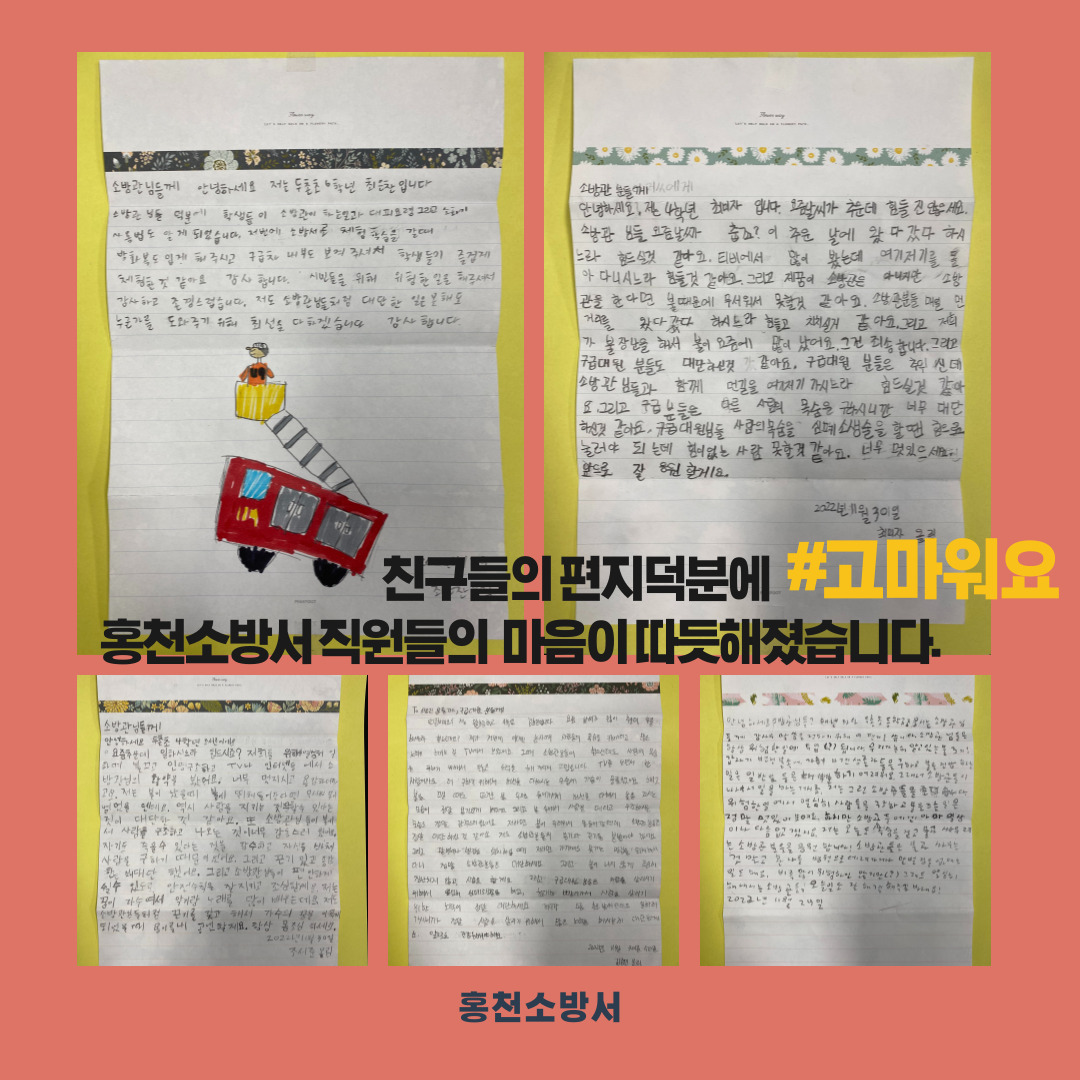 홍천소방서에 감사의 편지가 전달되었습니다.