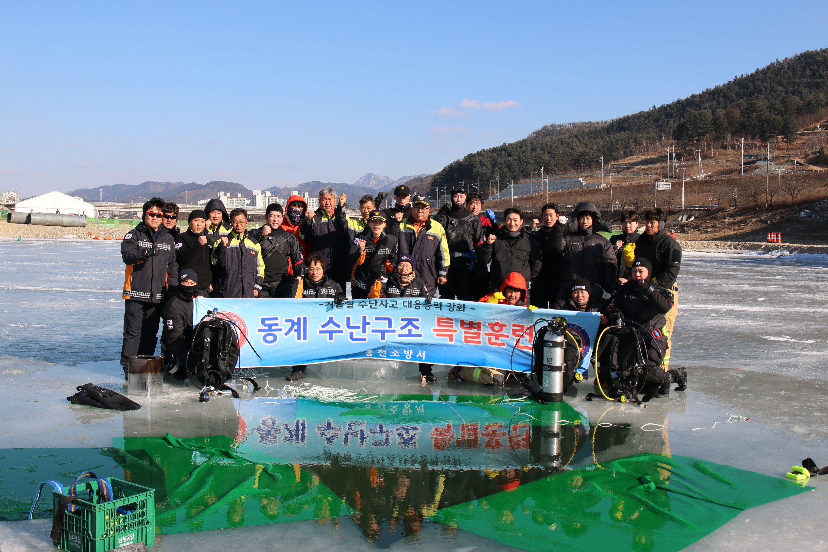 겨울철 강이나 저수지에서 일어날 수 있는 수난사고에 대비, 구조대원의 수난구조기법 및 장비조작 능력강화를 목적으로