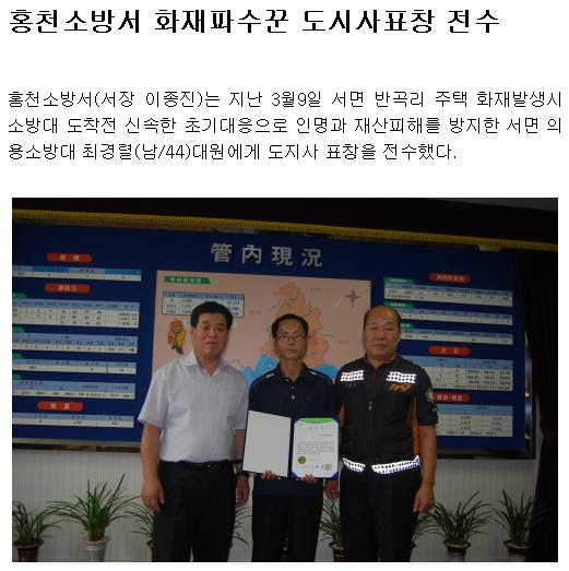 홍천소방서 화재파수꾼 도지사 표창 전수