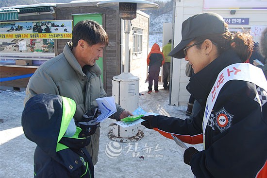 [홍천=참뉴스]강원 홍천소방서(서장 이종진)는 4일 홍천강 꽁꽁축제장 안점점검 및 겨울철 각종 안전사고 방지를 위한 캠페인을 홍천소방서, 홍천군청 등 공무원 30명이 참가한 가운데 실시했다.
