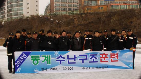 홍천소방서(서장 이종진)소방대원 20여명은 30일 홍천 갈마곡리 홍천강에서 소방대원 수난구조능력과 빙상사고 대비 전문지식, 구조기술 습득을 통한 현장대응 능력 배양 훈련을 실시했다. 교육 훈련은 반복숙달을 통한 실질적 훈련으로 인명구조능력 배양과 현장안전 점검과 병행했다.
