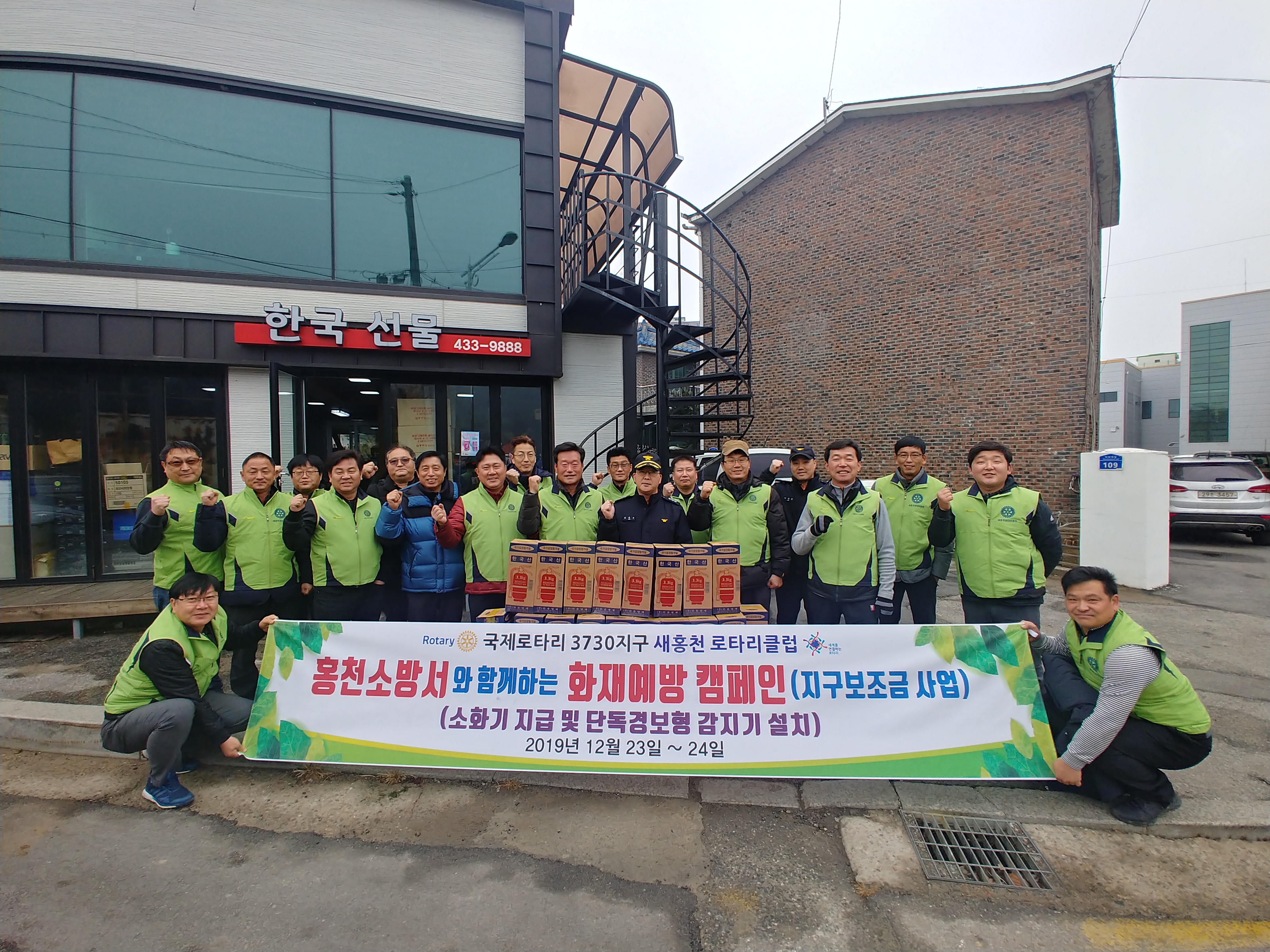 □ 이번 화재예방 캠페인과 함께 새홍천 로터리클럽은 홍천군 관내 취약계층 100여 가구를 대상으로 기초소방시설(소화기, 감지기)을 무료로 기증 설치하는 봉사활동도 함께 펼쳤다.