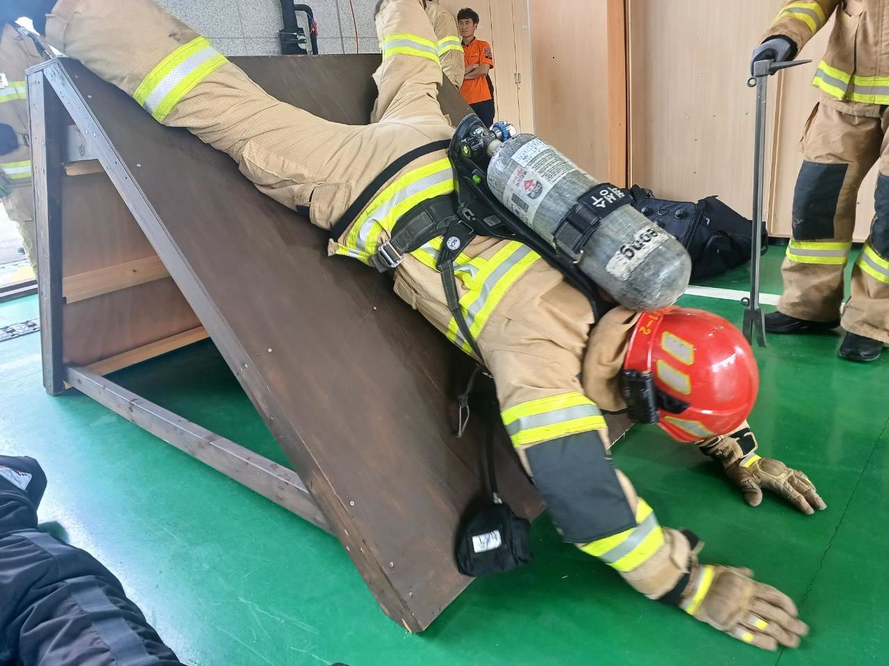 세부 훈련 내용으로는 방화문 개방 방법 및 실습, 낮은 장애물 및 좁은 공간 장애물 통과, 얽힘 장애물 및 A형 장애물 통과, 마네킨 활용한 데버드릴 탈출, 인명검색 및 비상호흡법, 위험징후 파악 및 위험정보 전파, 대원추적관리, 동료구출 절차 숙달훈련을 하였다.