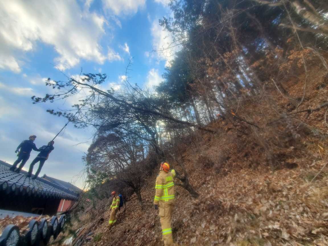 홍천소방서(서장 김숙자)는 5일 오후 2시 16분경 홍천군 남면 명동리의 한 주택 인근에서 산에서 쓰러진 나무가 지붕 위로 낙하할 위험이 있다는 신고를 접수하고 신속히 대응해 안전 조치를 완료했다고 밝혔다.