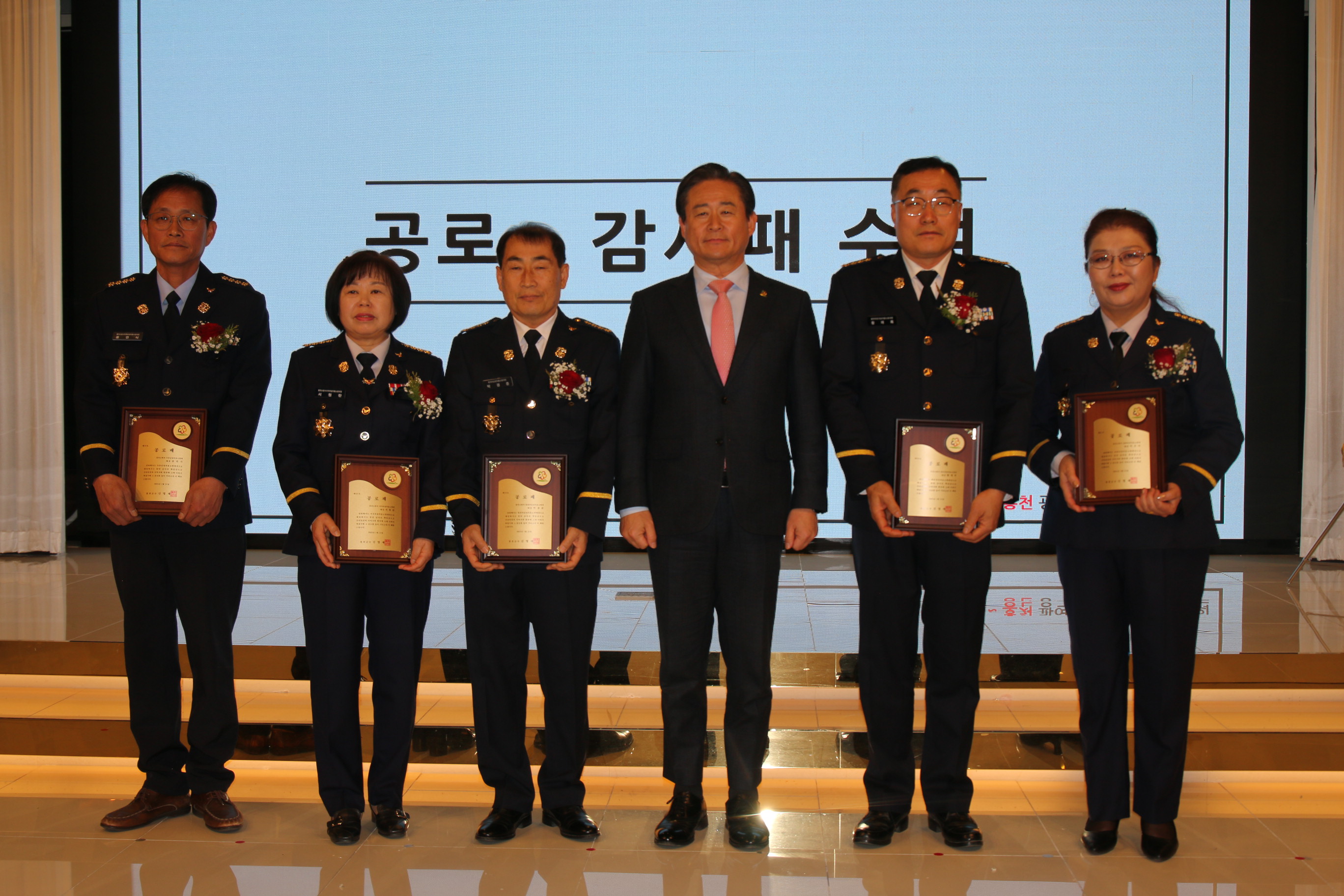 홍천소방서는 용연식 전 두촌남성의용소방대장을 비롯한 이임대장 5명에게 지역의 안전과 의용소방대 발전에 기여한 공로패를 수여하고, 안전문화 정착을 위한 헌신과 노고에 감사와 격려를 표했다.